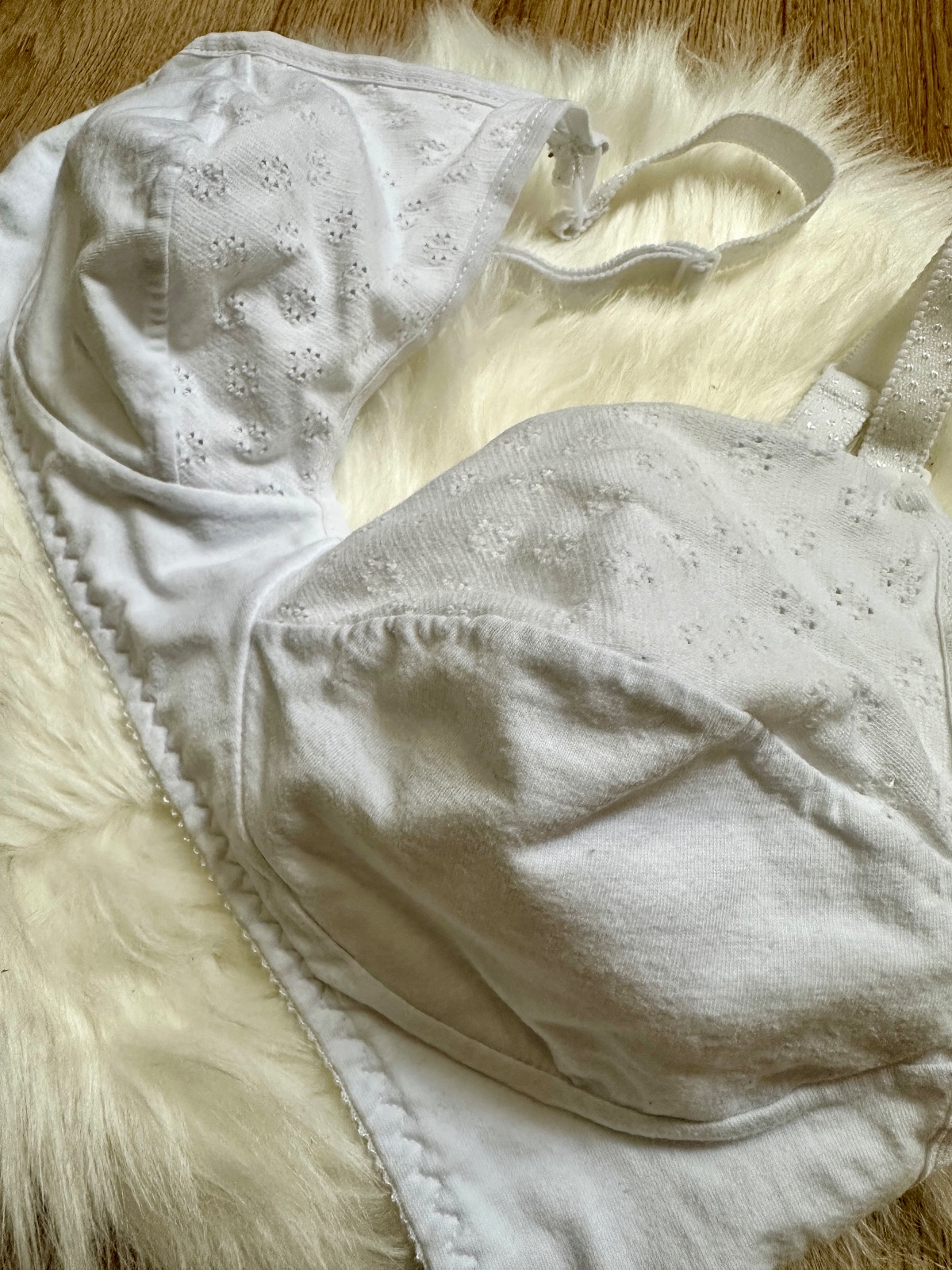 Jemná biela vystužená podprsenka na dojčenie pre každú maminku. Strih, ktorý dokonale sadne. Typ podprsenky: vystužená, s kosticami Vnútorná strana košíkov je podšitá jemnou 100% bavlnou. Zapína...