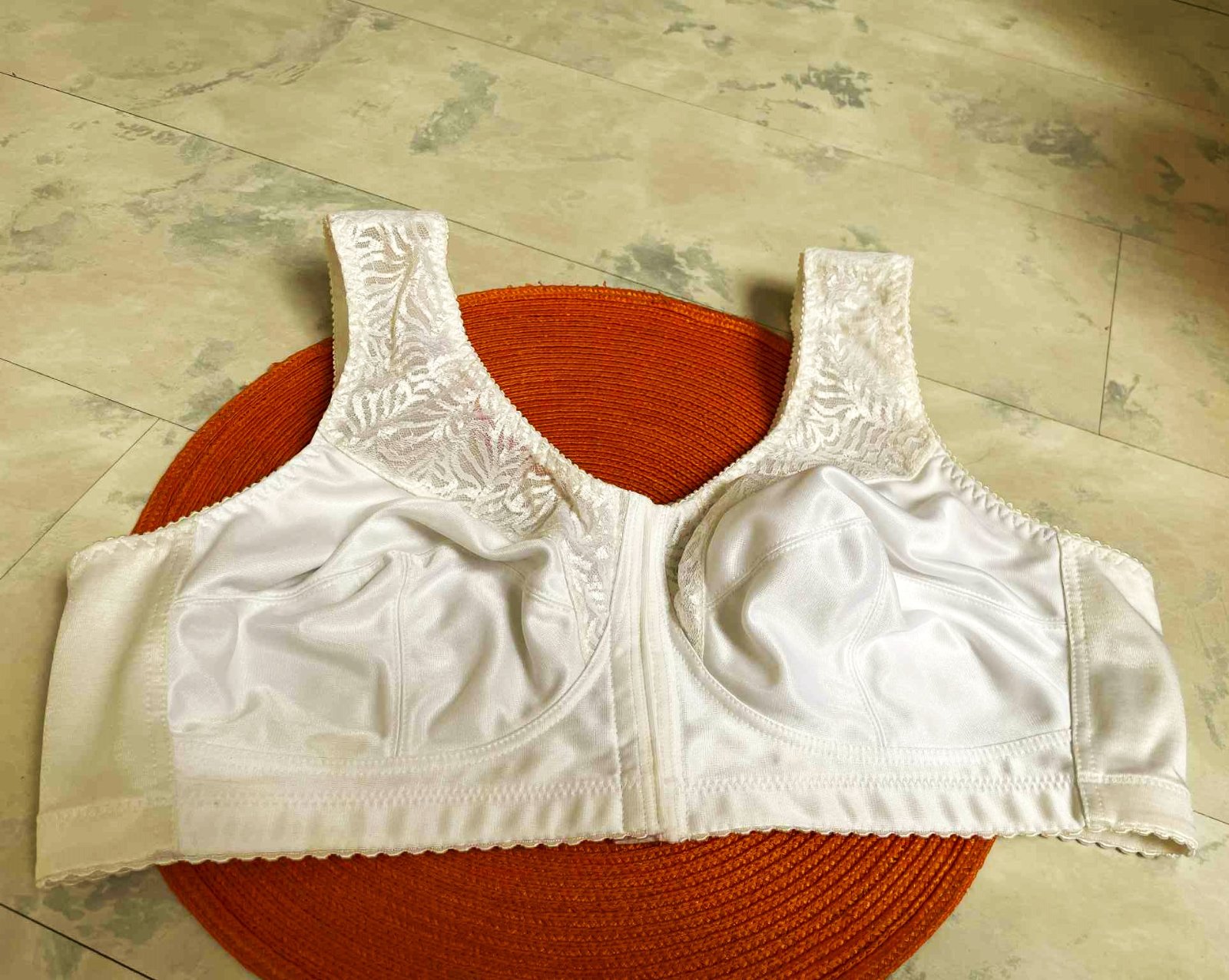 perfektne sediaca kojenecká podprsenka so zapínaním na háčiky vpredu,pevné hrubšie ramienka - zdnu vypolstrované, aby netlačili a nezarezávali sa,kvalitná krajka,v top stave,obvod meraný v kľude 90 cm, poddá sa pekne do 95,košík je uvedený B ale veľkosť je na C/D