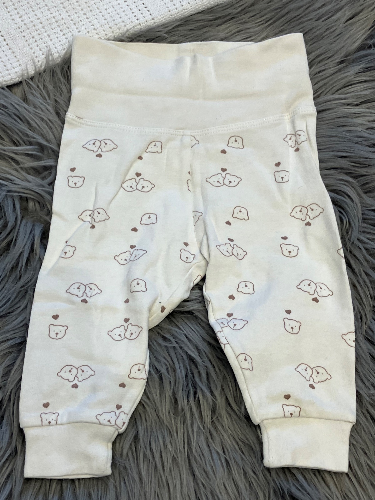 Chlapčenské polodupačky s macíkmi a srdiečkami, vysoký pás, elastické, farba maslovo-hnedá.
