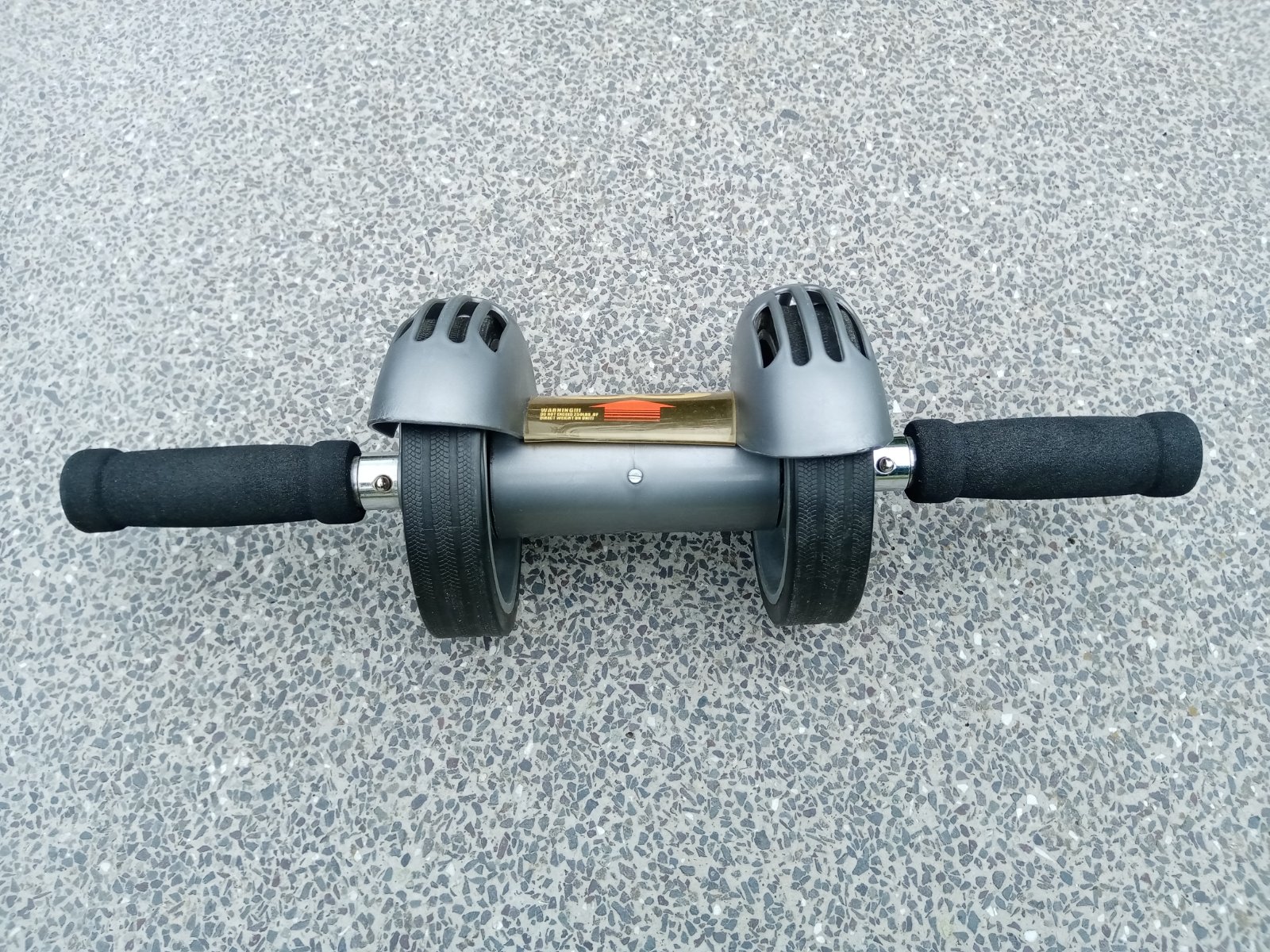 Posilňovacie kolieska Powerstretch Roller na posilňovanie brucha a spevnenie tela. V polohe ako pri robení kľukov (na špičkách alebo na kolenách) sa uchopia držadlá prístroja a kolieskami sa pohybuje dopredu a dozadu, čím sa napínajú svaly najmä v oblasti brucha.
