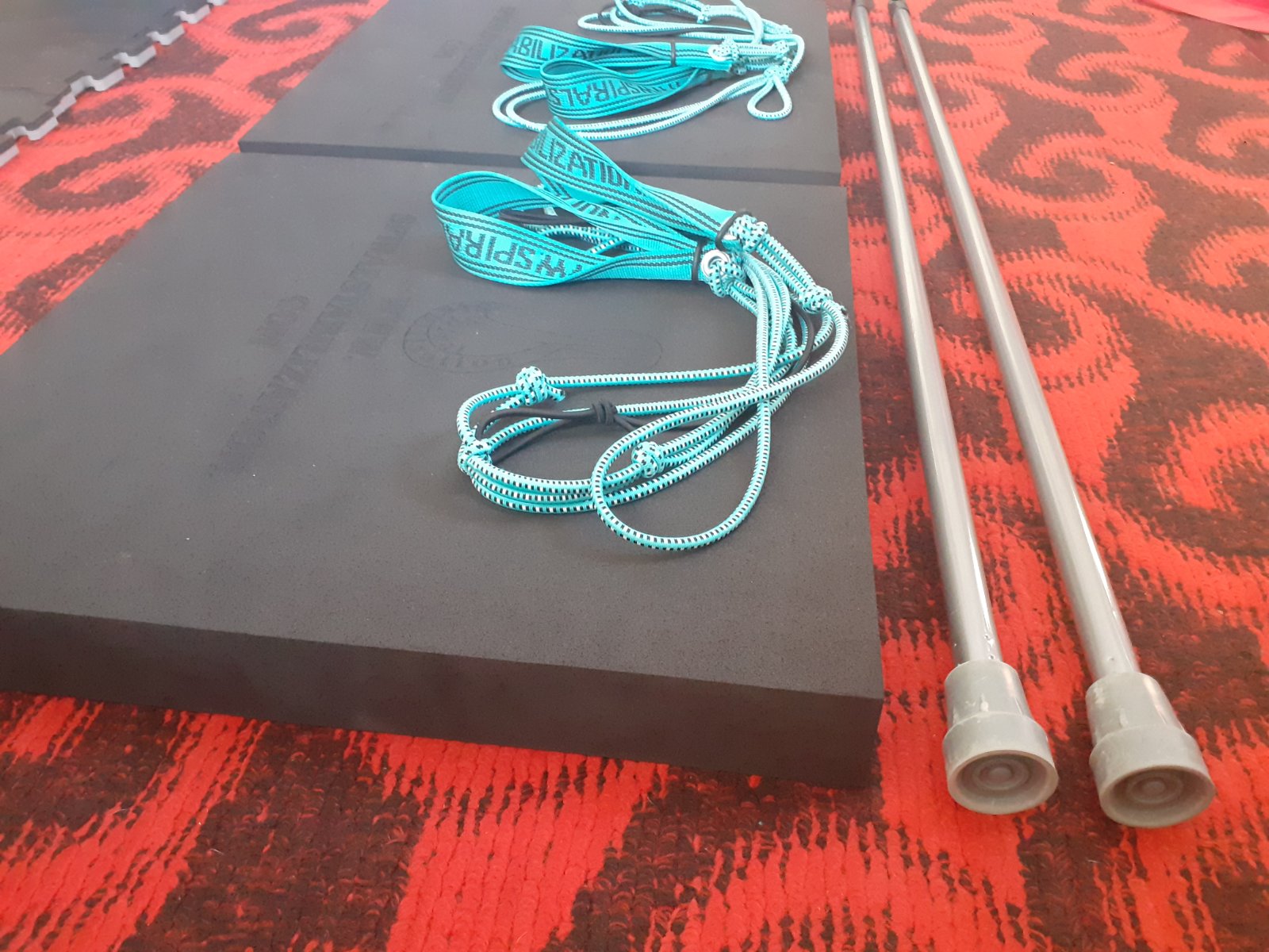 Cena 90 € za všetko, alebo 42 € za set bez tyčí (podložka a lano), oporné tyče 6 €.