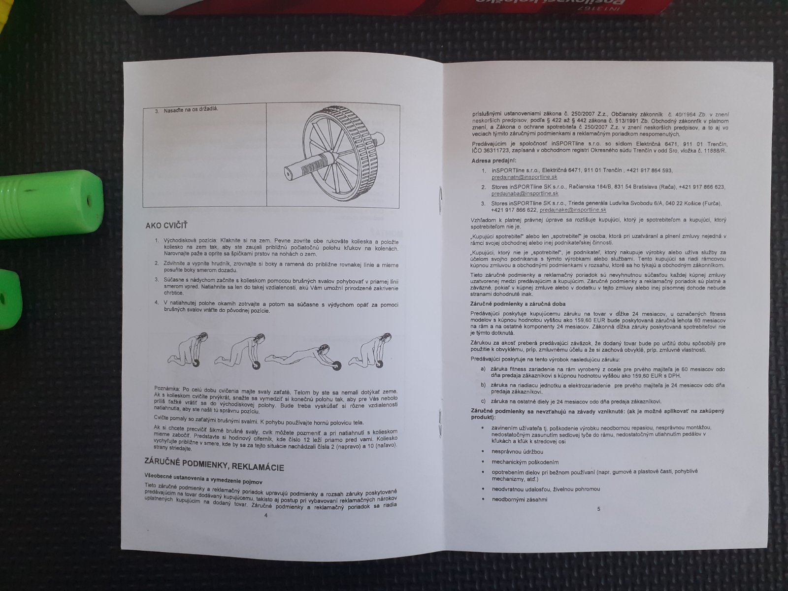 Predám minimálne používané posilňovacie zdvojené koliesko "Roller" či "Exercise Wheel" na posilňovanie brušných svalov, rúk, chrbta, hrudníka. Farba žlto - zelená. Je prakticky rozložiteľné, takže si ho môžete vziať so sebou aj niekam na cesty. Po zložení drží pevne a spoľahlivo. V pôvodnom balení aj so škatuľou a manuálom. Priemer kolesa 18 cm, rozmery škatule 24 x 22,5 x 5,5 cm.
