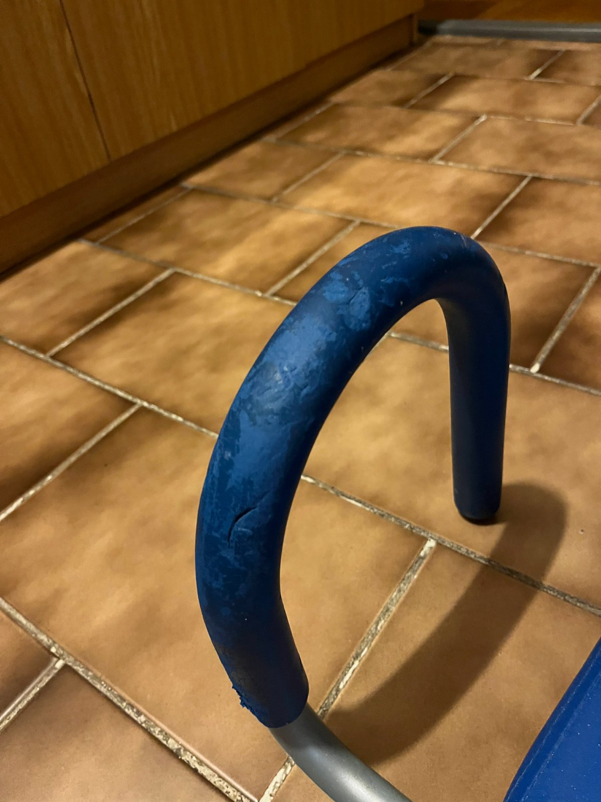 Nevyuzivany, len mierne olupana guma na pravej rucke (vid foto).