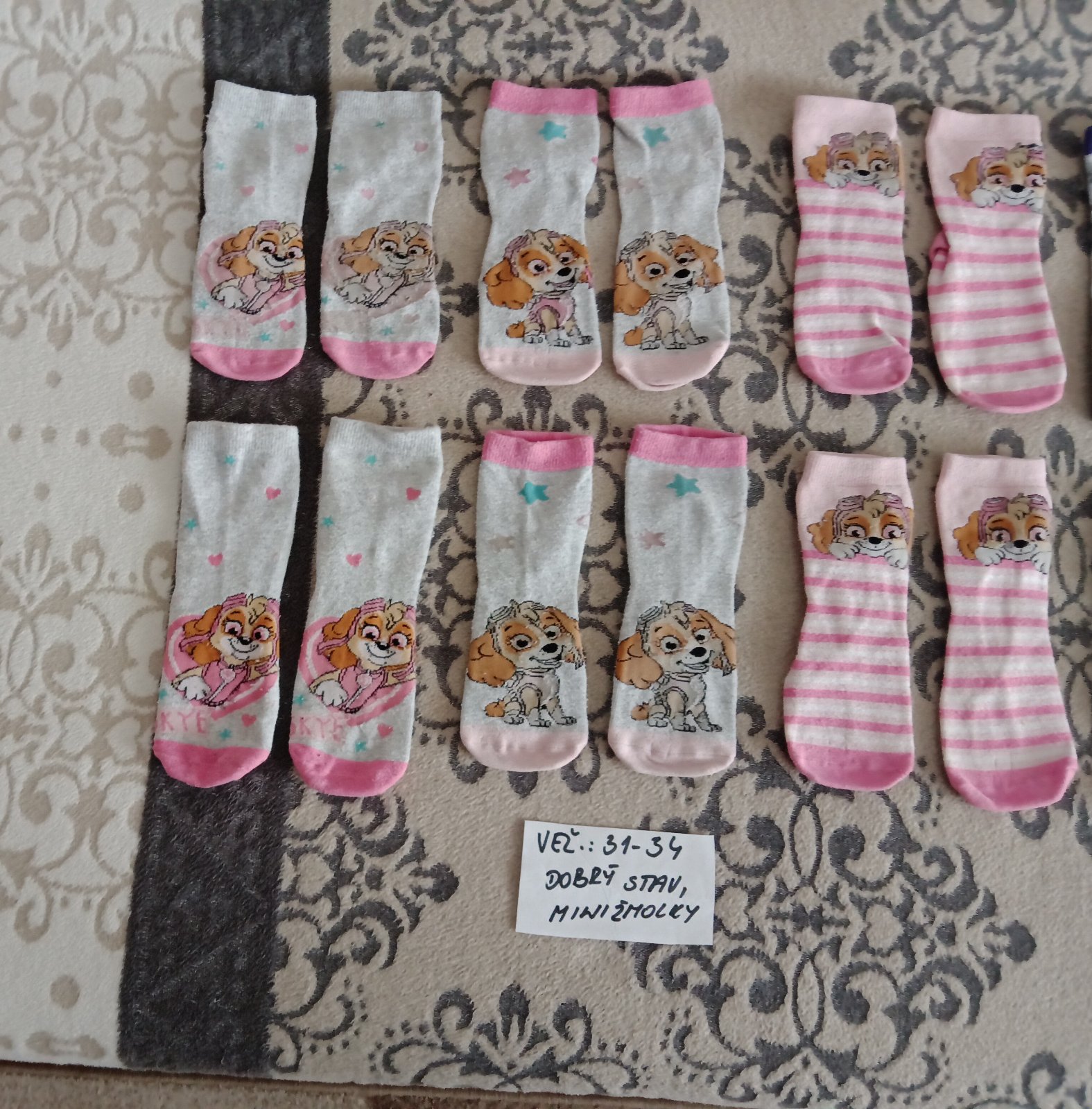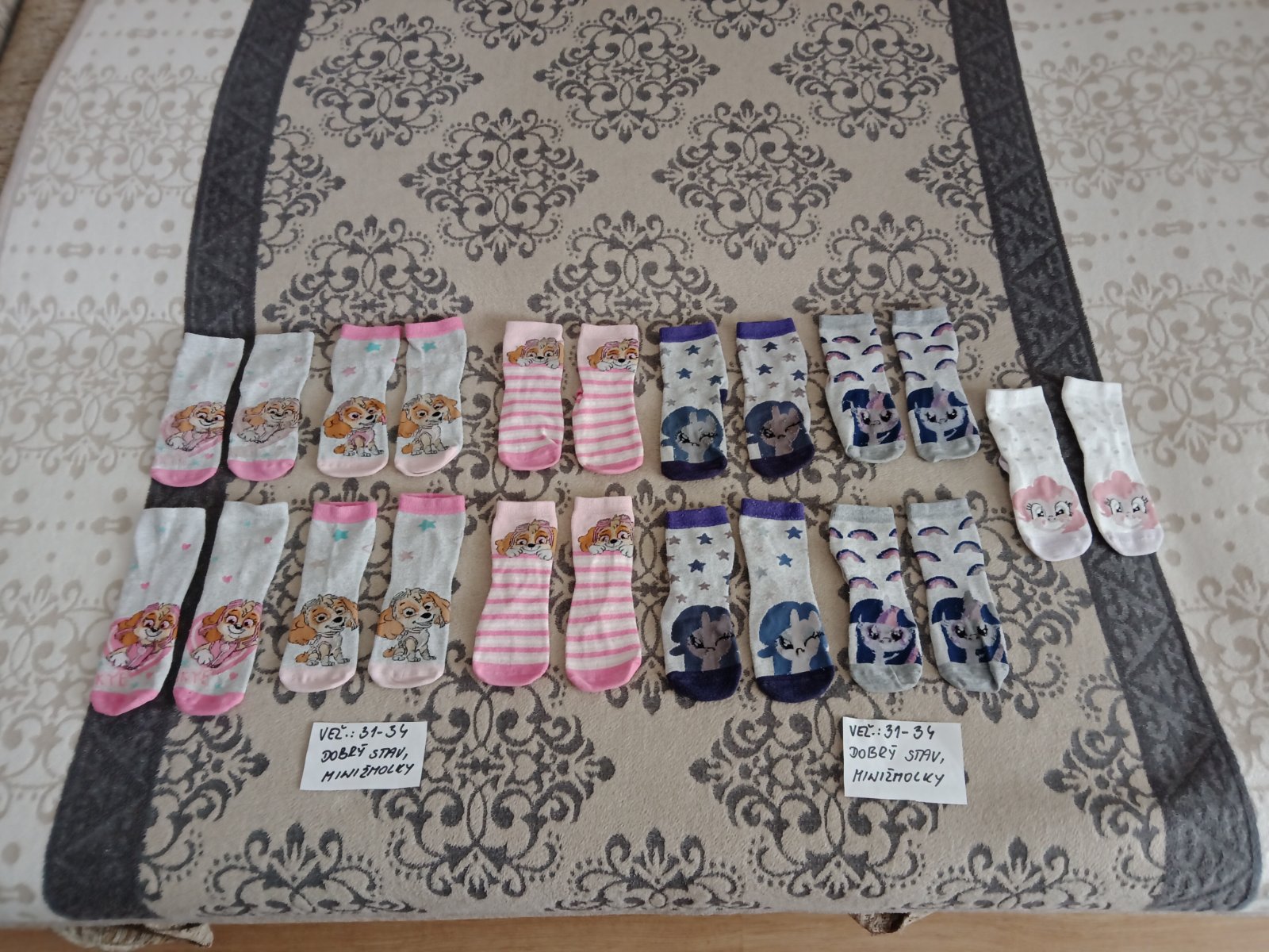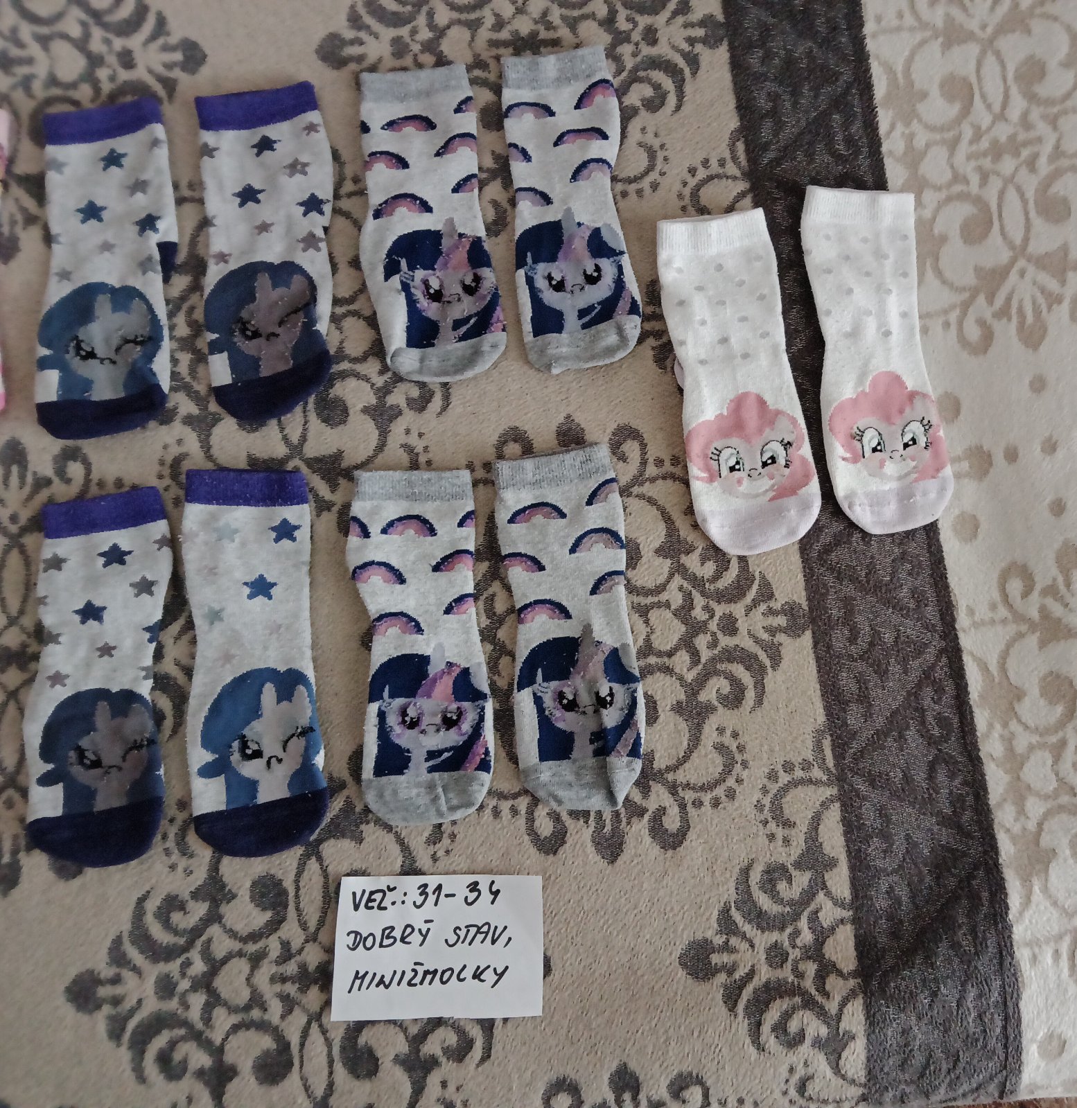 Predám dievčenské ponožky veľ.31-34,v nosenom stave.Minizmolky z prania,ale ešte poslúžia.Cena za pár 0,40centov.