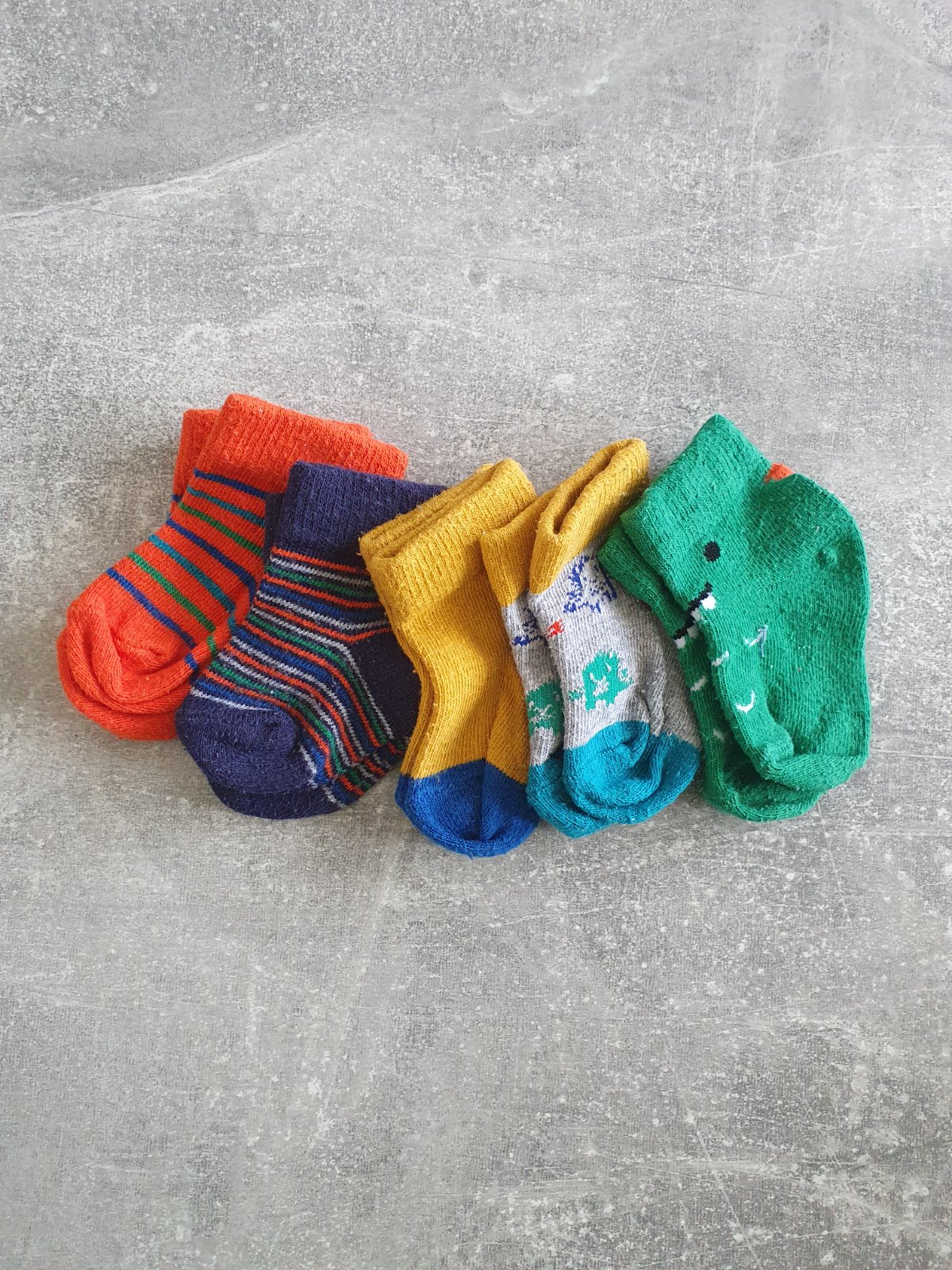 Detské ponožky veľkosť 56-62 (0-3 mesiace). Ponožky párkrát používané, bez poškodení. CEna 3€ + poštovné.