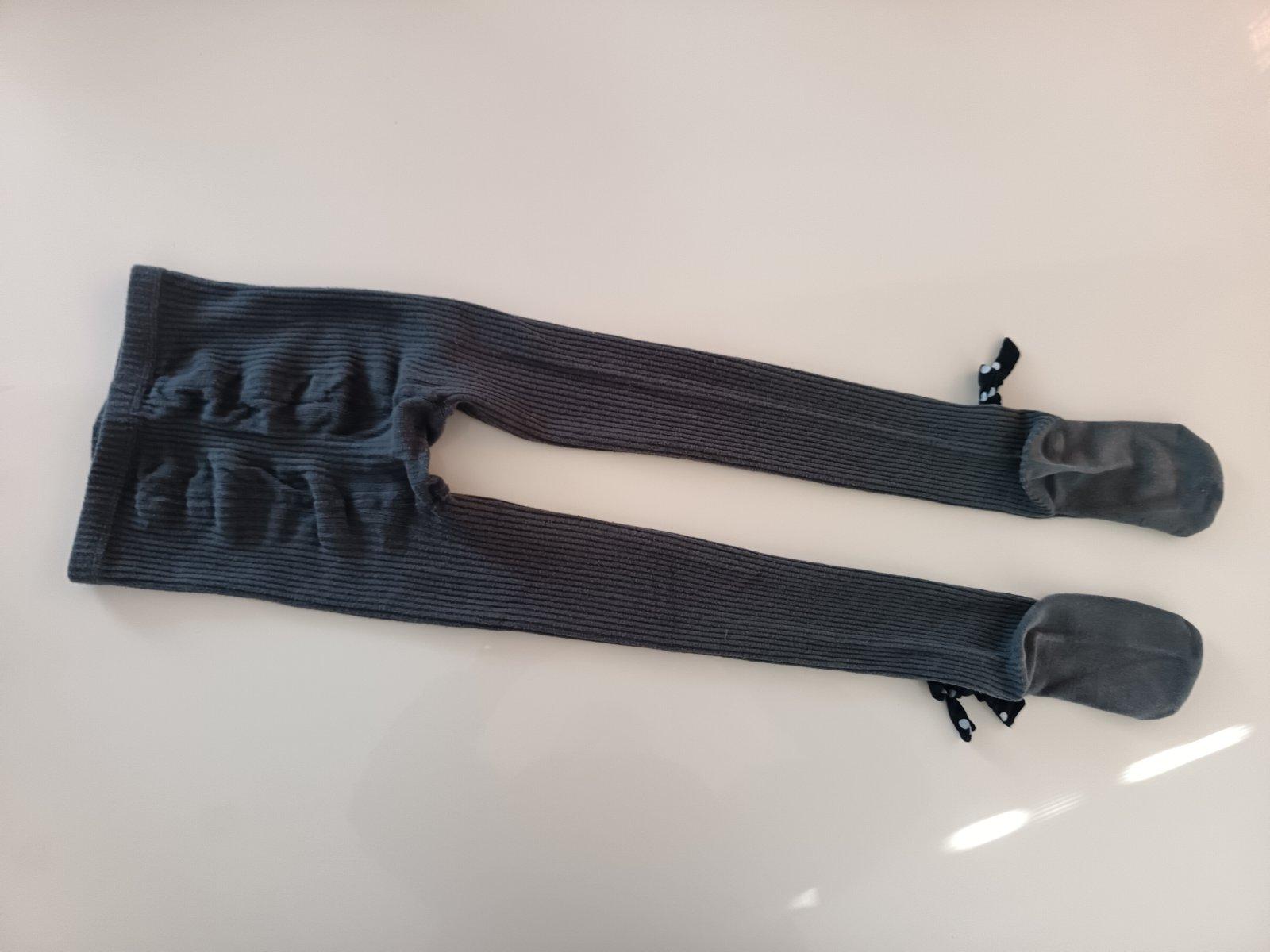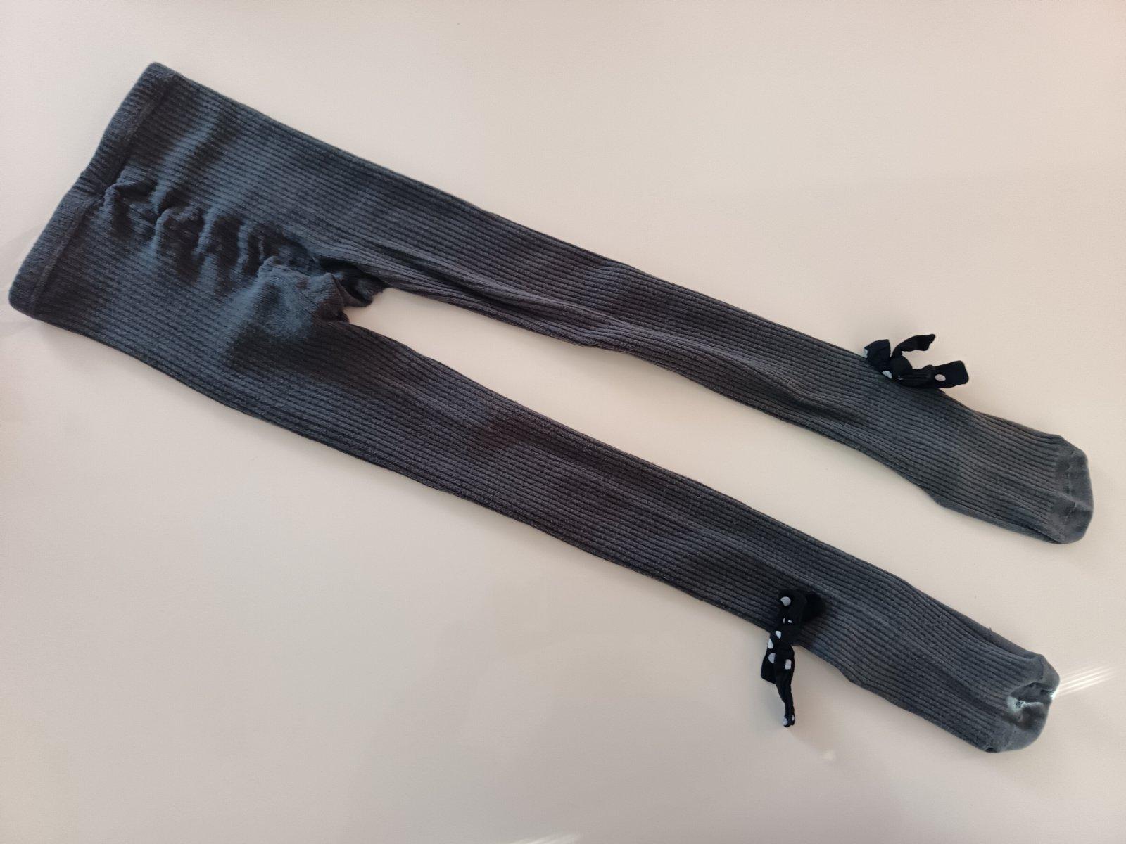 Tmavo šedé pančuchy, po bokoch nad členkom mašlička čierna s bielymi bodkami, bez poškodenia, veľkosť písaná 10-12ale sú menšie, preto udavam 134.