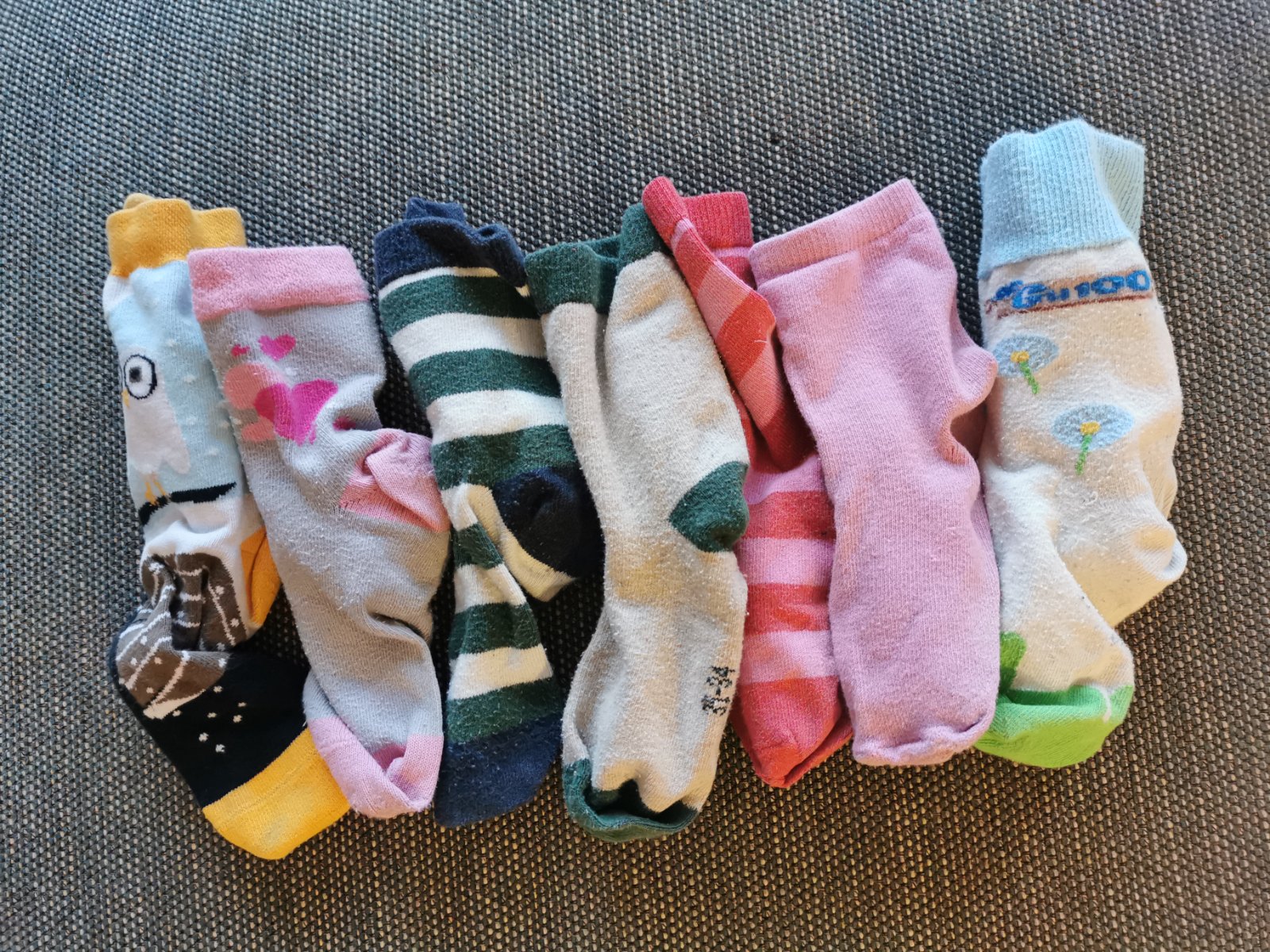 Nosené, možno niektoré trochu prešuchane, možno niekde minidierka a možno ani nie, nechce sa mi ich všetky kontrolovať. Cena spolu za 7kusov.