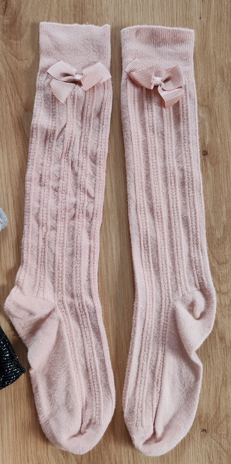 Predam 1x podkolienky velkost tak 33 my sme ich tak nosili, nepíše na nich velkost a 3x ponozky velkost 35. vyborny noseny stav
