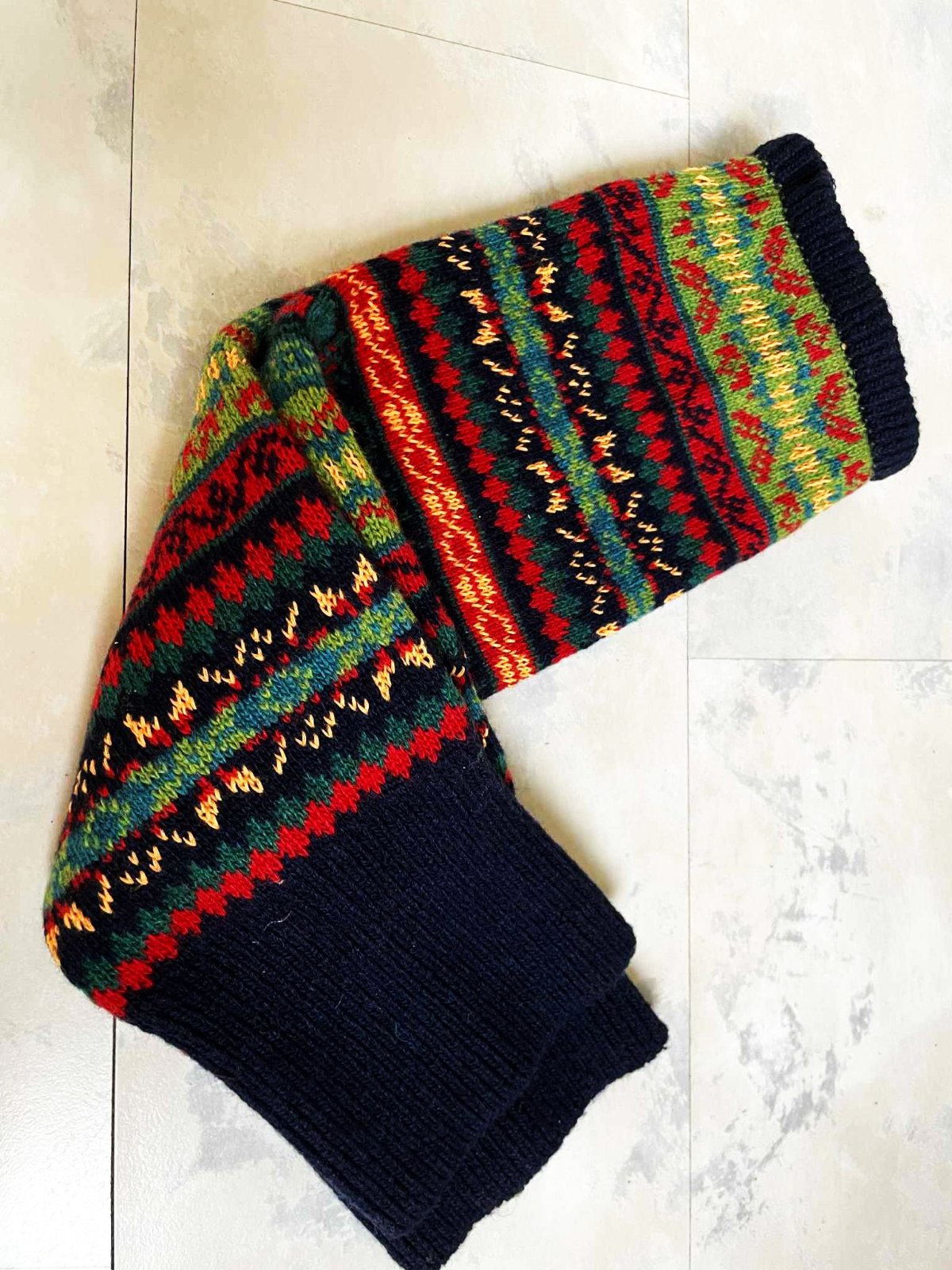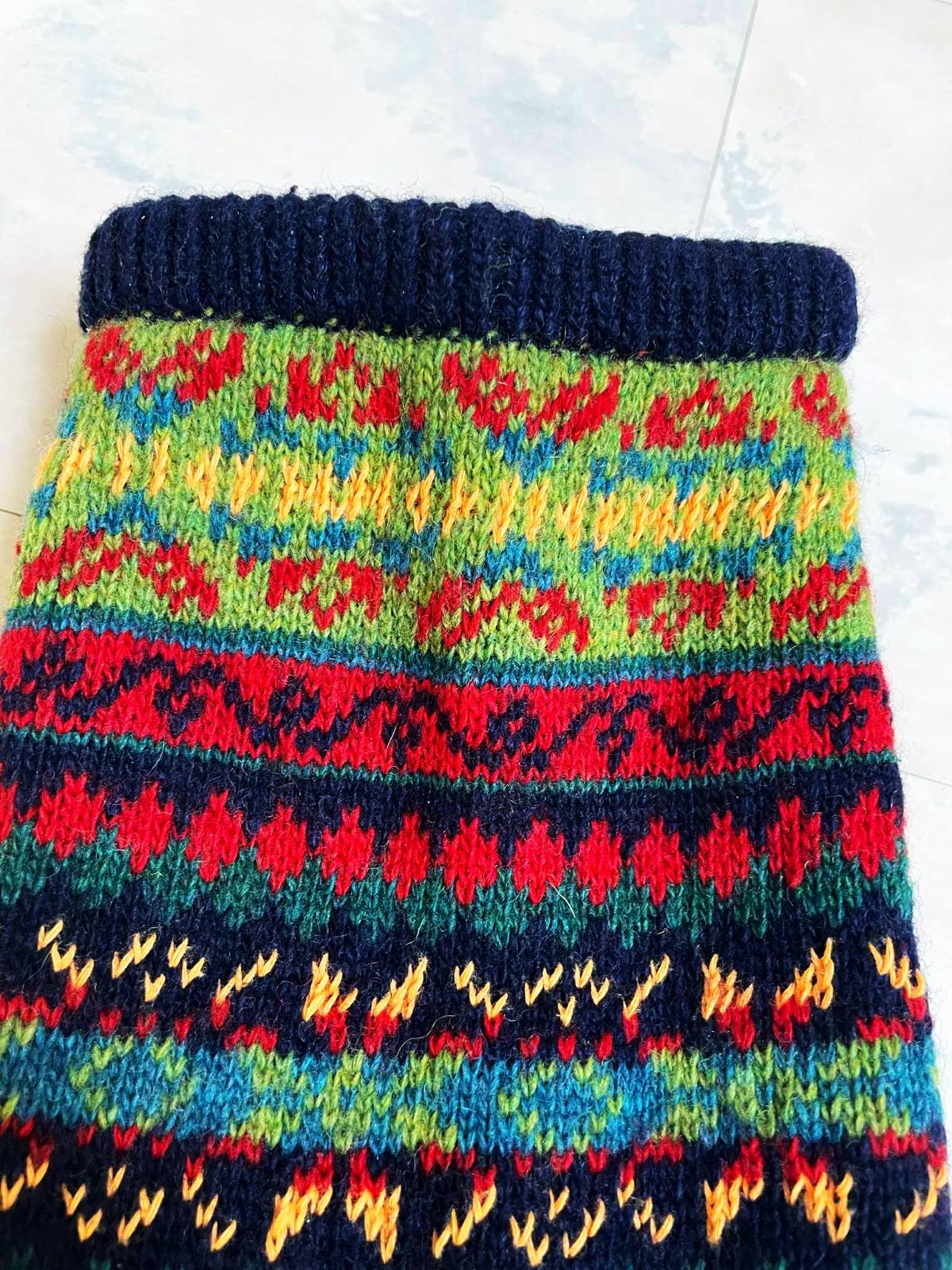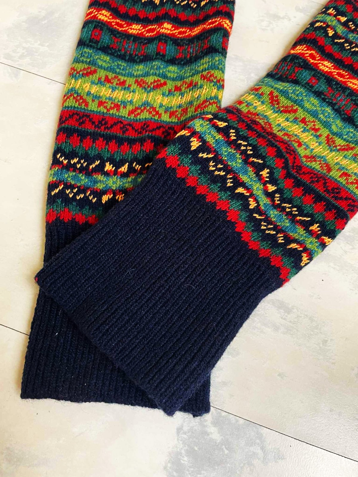 kvalitné vlnené vysoké štucne - farebné s nórskym vzorom,dlžka celkom = 48 cm, z toho modrá rumba = 11 cm