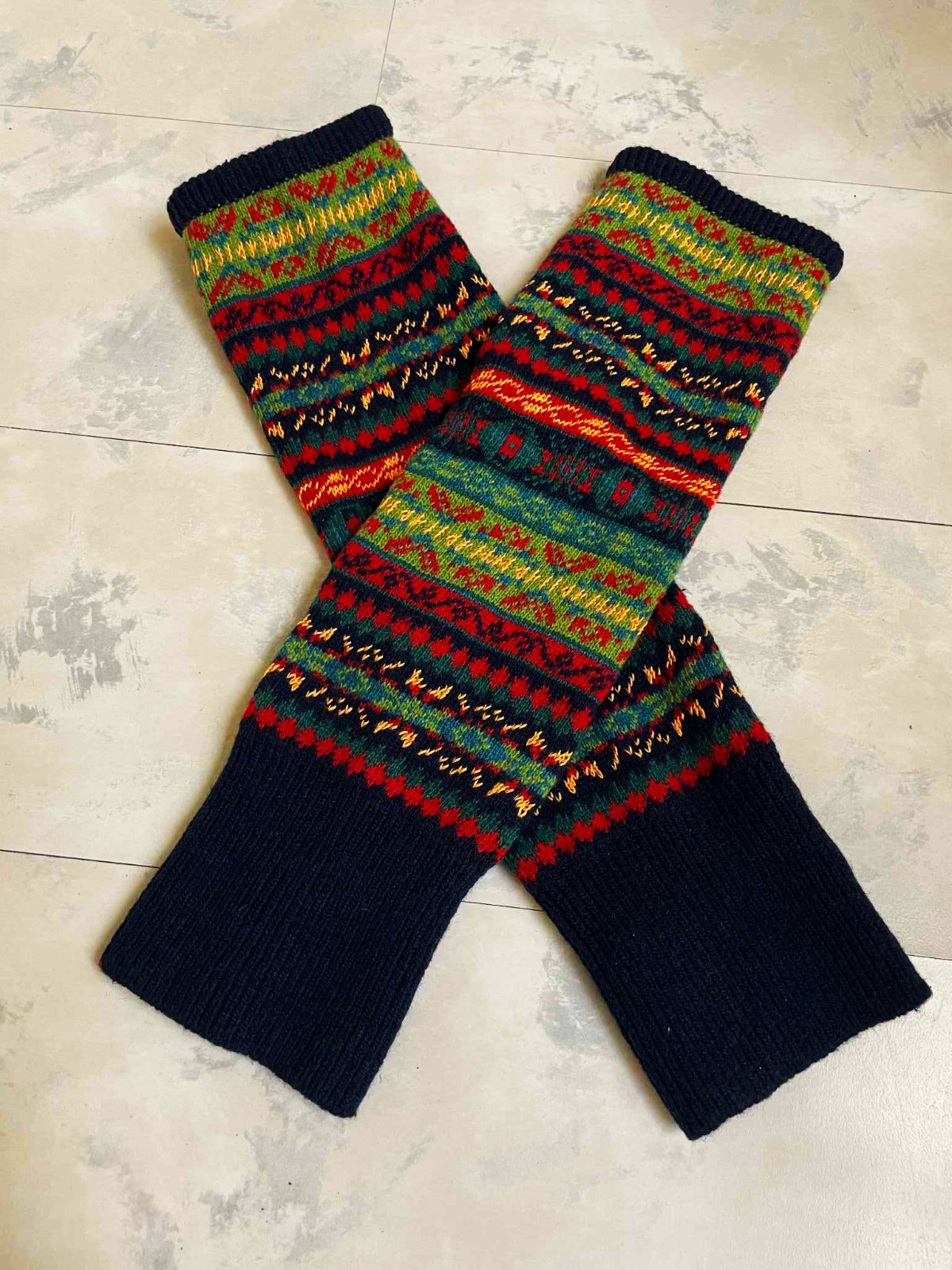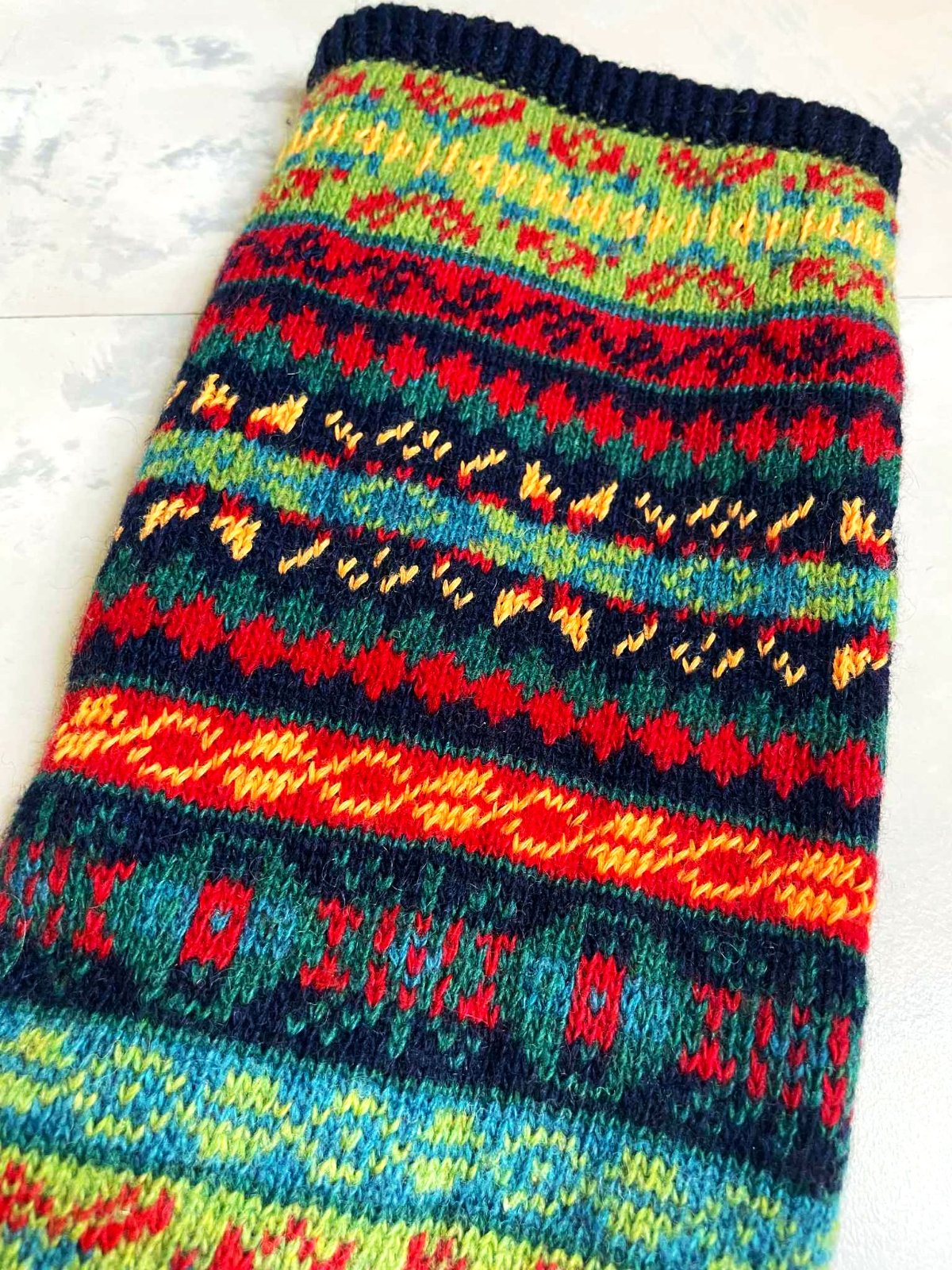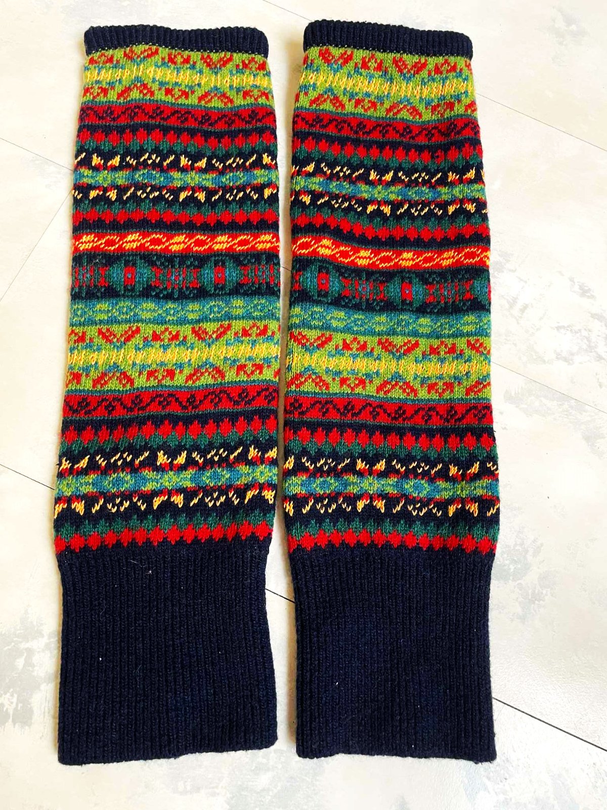kvalitné vlnené vysoké štucne - farebné s nórskym vzorom,dlžka celkom = 48 cm, z toho modrá rumba = 11 cm