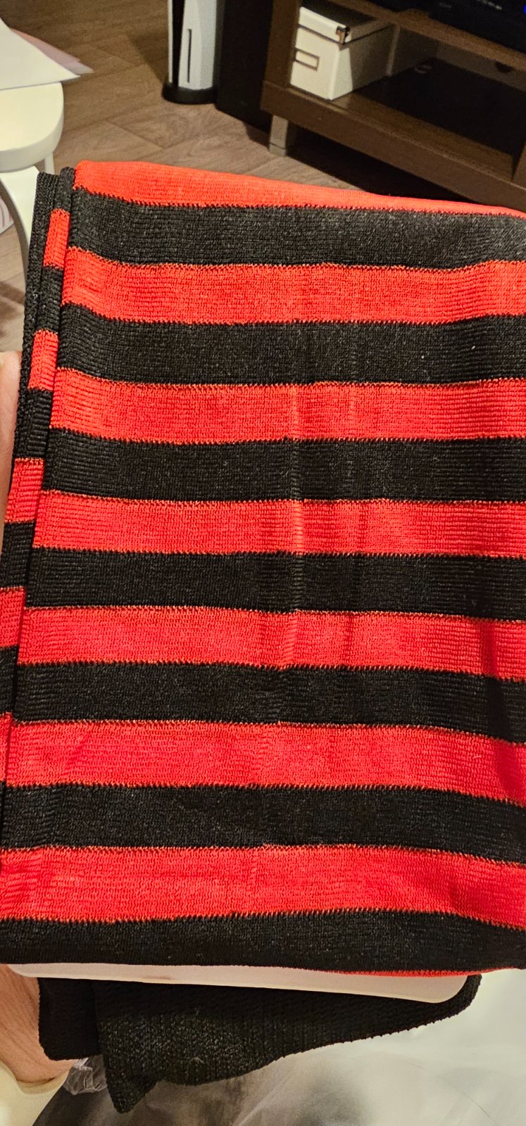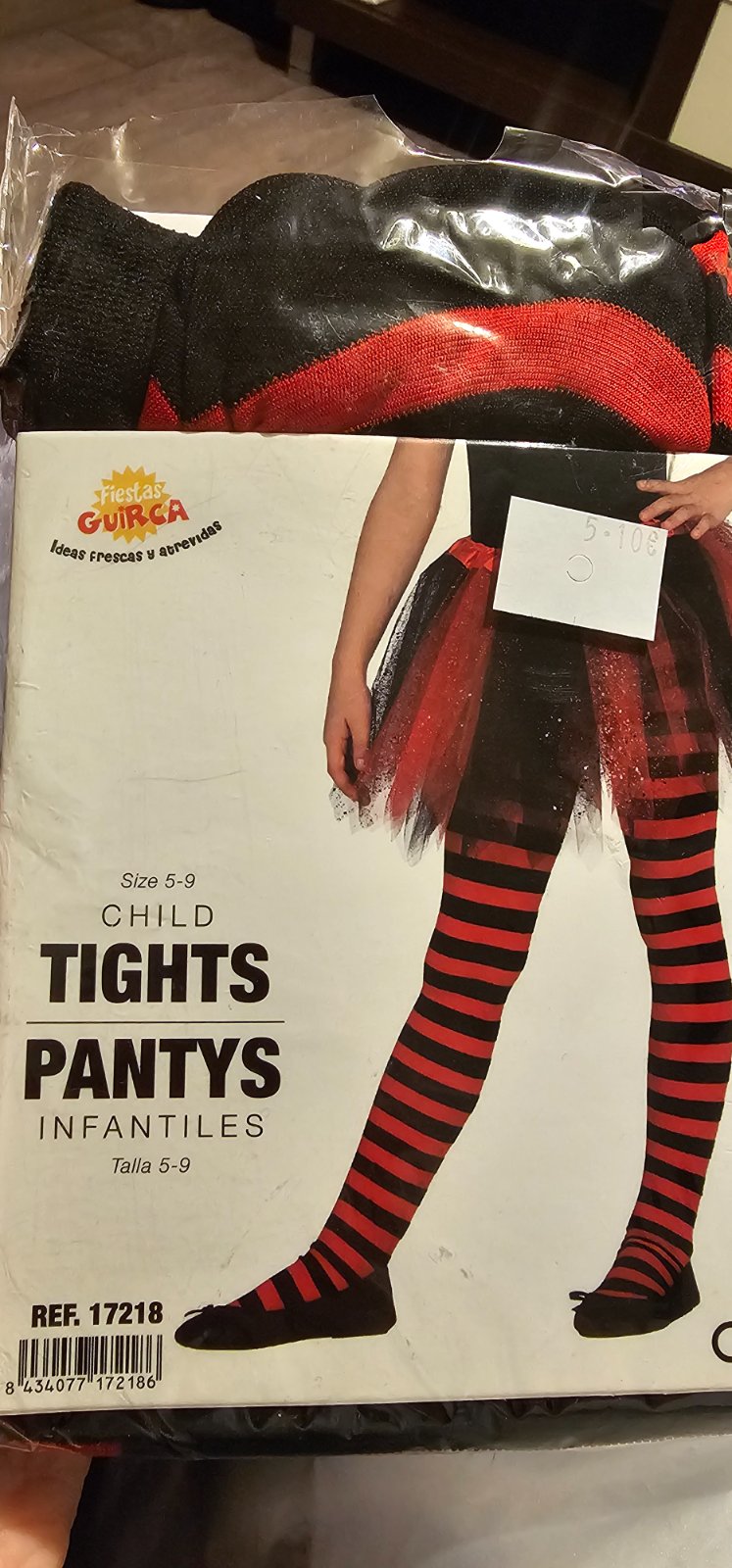 Prúžkované, červeno-čierne, silonky kupované na karneval k maske Mavis. Neboli oblečené iba otvorené.