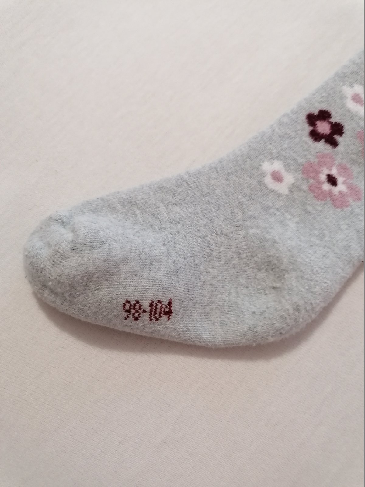 Teplejsie pancusky s kvetinkovym vzorom. Dvojcislo 98/104, kuk dlzka na foto.