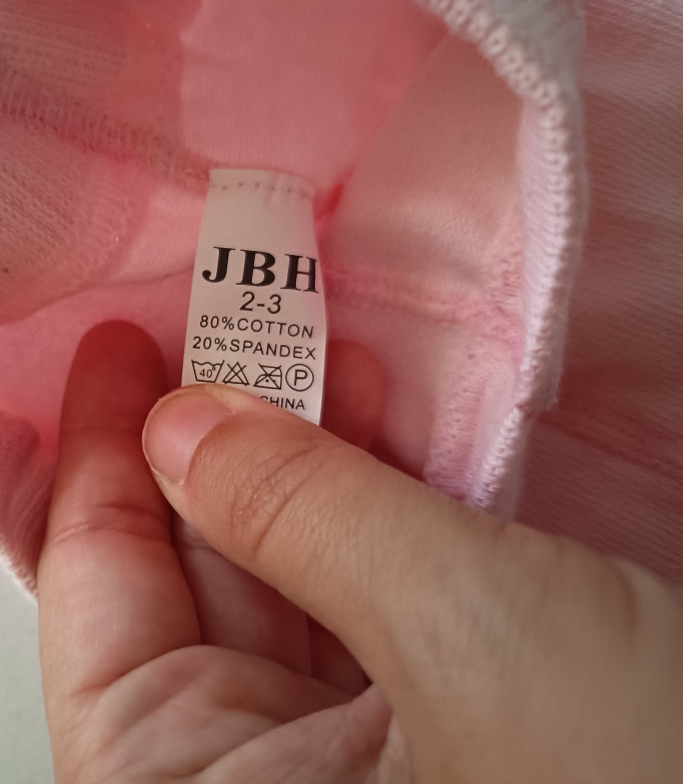 80% bavlna 18% polyamid 2%elastan Rozmery 1-2 - 9-14kg, 80-92cm 3-4 - 15-19kg, 93-105cm 5-6 - 20-25kg, 106-118cm 7-8 - 26-31kg, 119-131cm 3.50€ /ks plus posta Niekde už nie su ružové