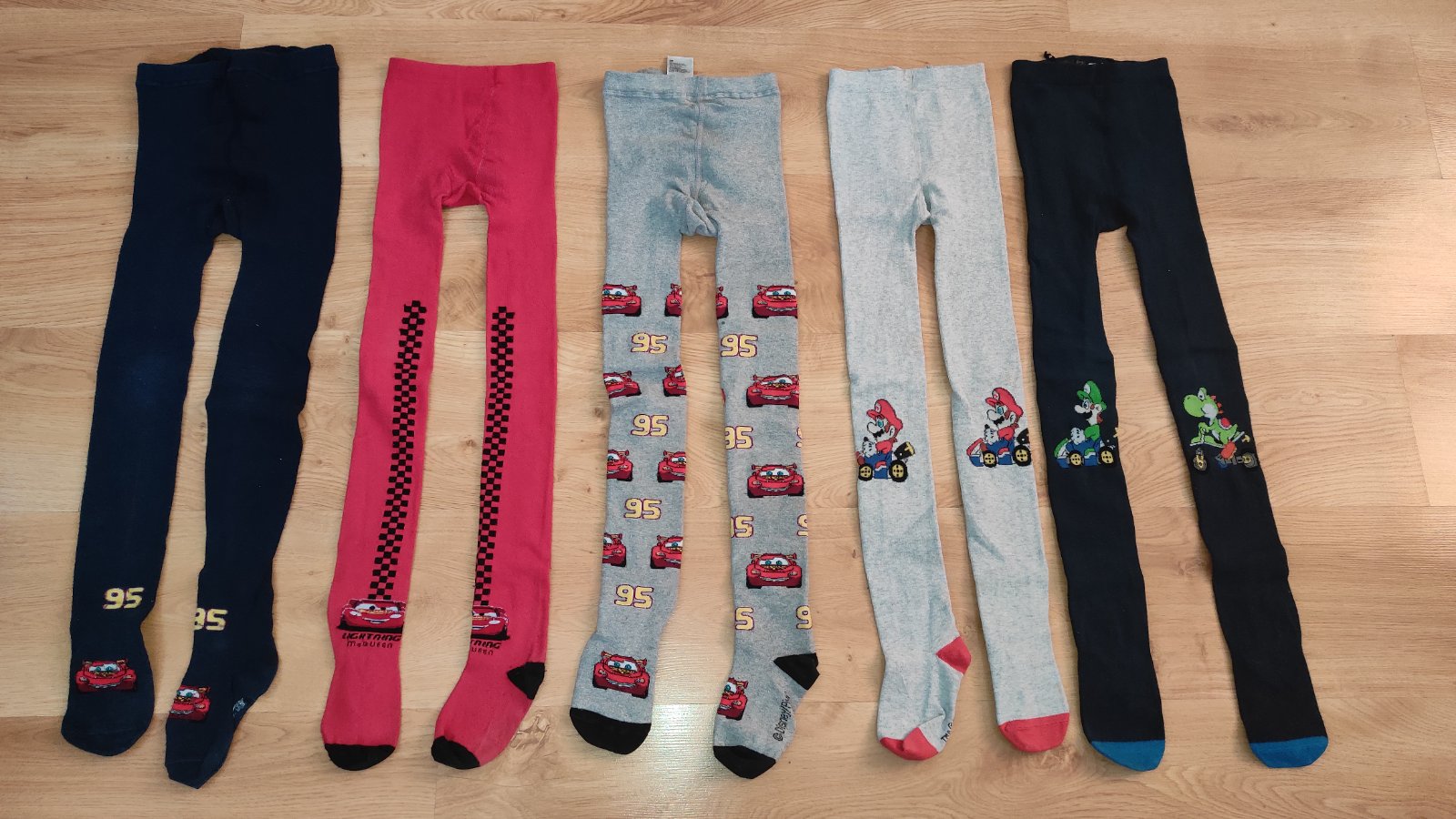 Dobre sa nosia aj dobre sedia. S Mariom super stav bez poškodení. Červené autové ok ( tie sú není H&M) sivé málinko vyťahané cez zadok, na modrých bolo prešívané presitie, tie už len tak prikladám. Cena 9 eur.