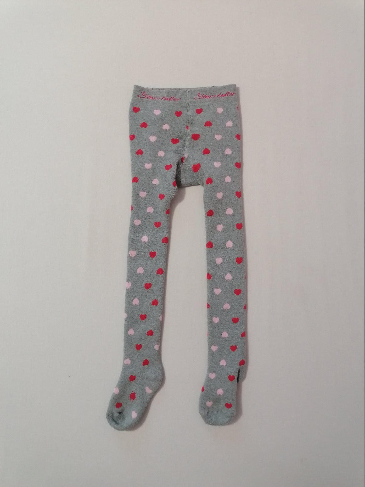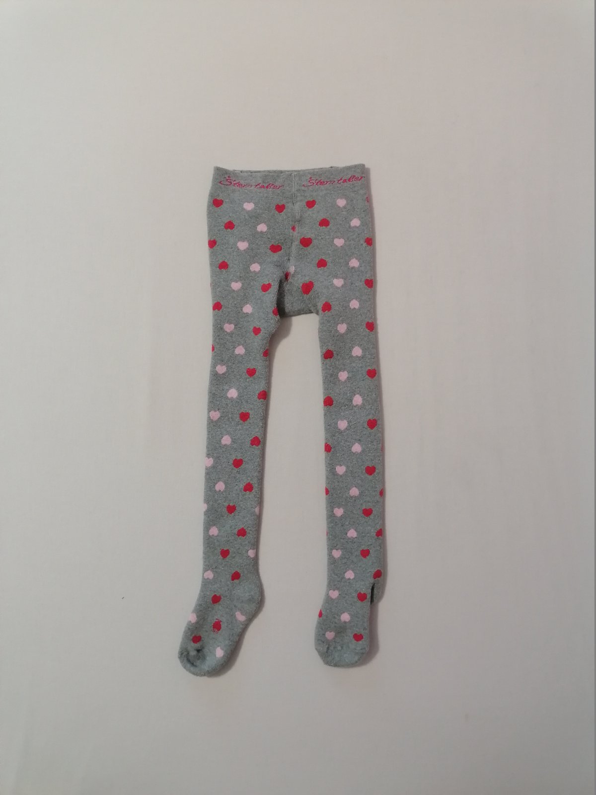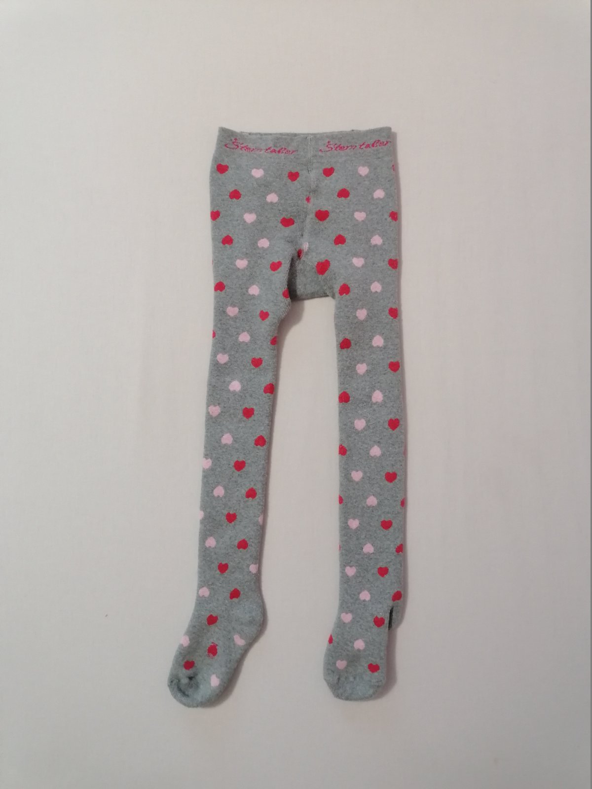 Teplejsie pancusky, sive so srdieckovym vzorom. Dvojcislo 98/104 - sedia skor na 104, kuk dlzka na foto.