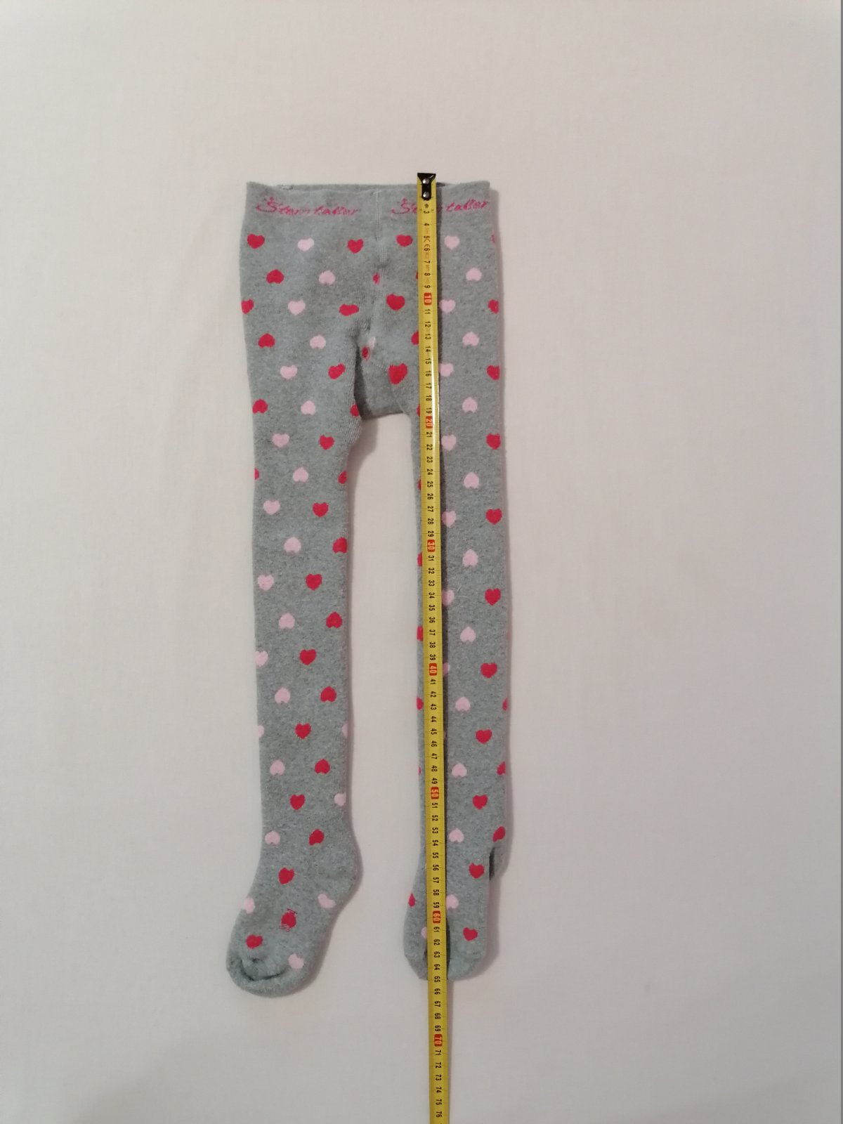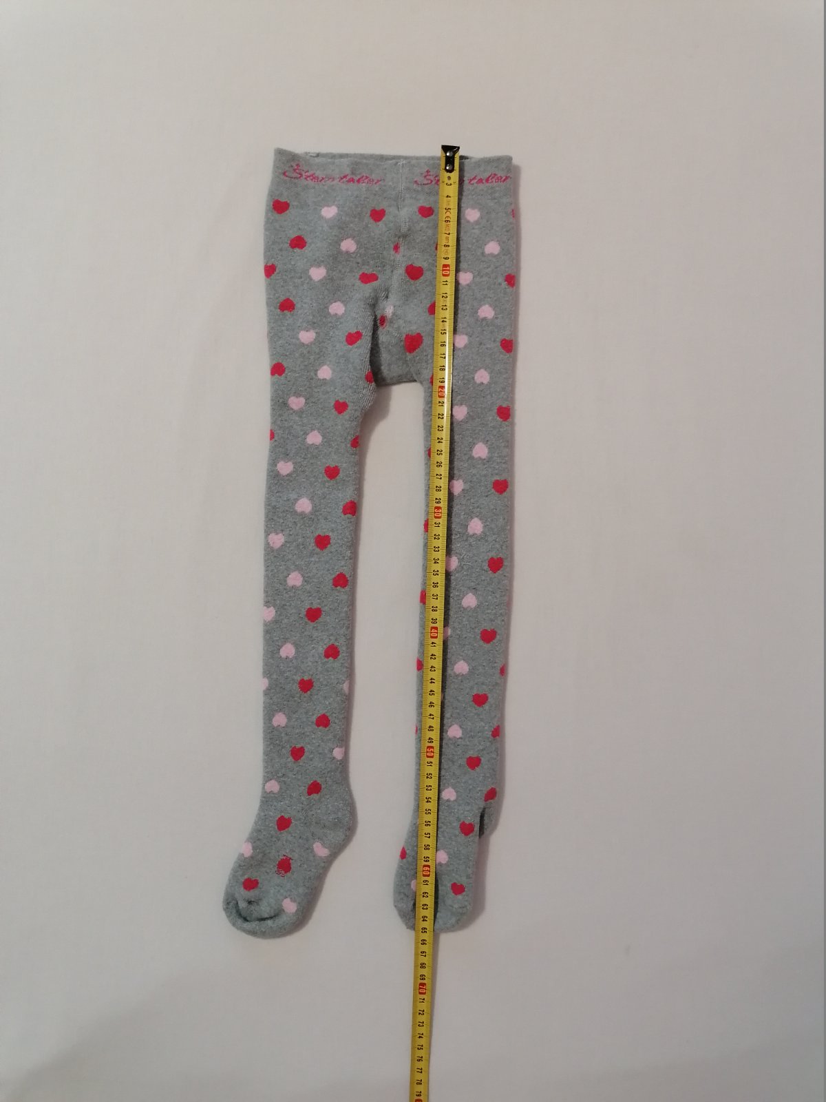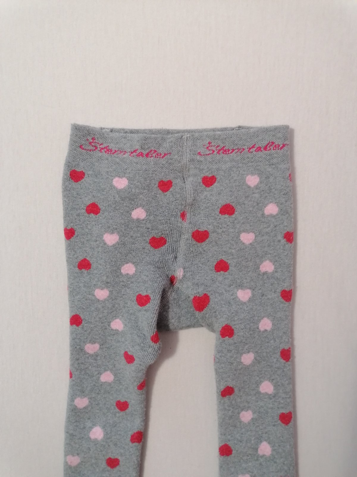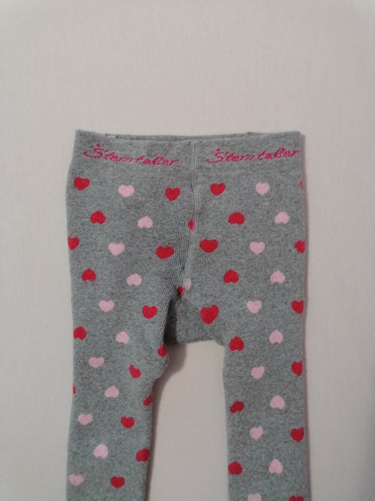 Teplejsie pancusky, sive so srdieckovym vzorom. Dvojcislo 98/104 - sedia skor na 104, kuk dlzka na foto.