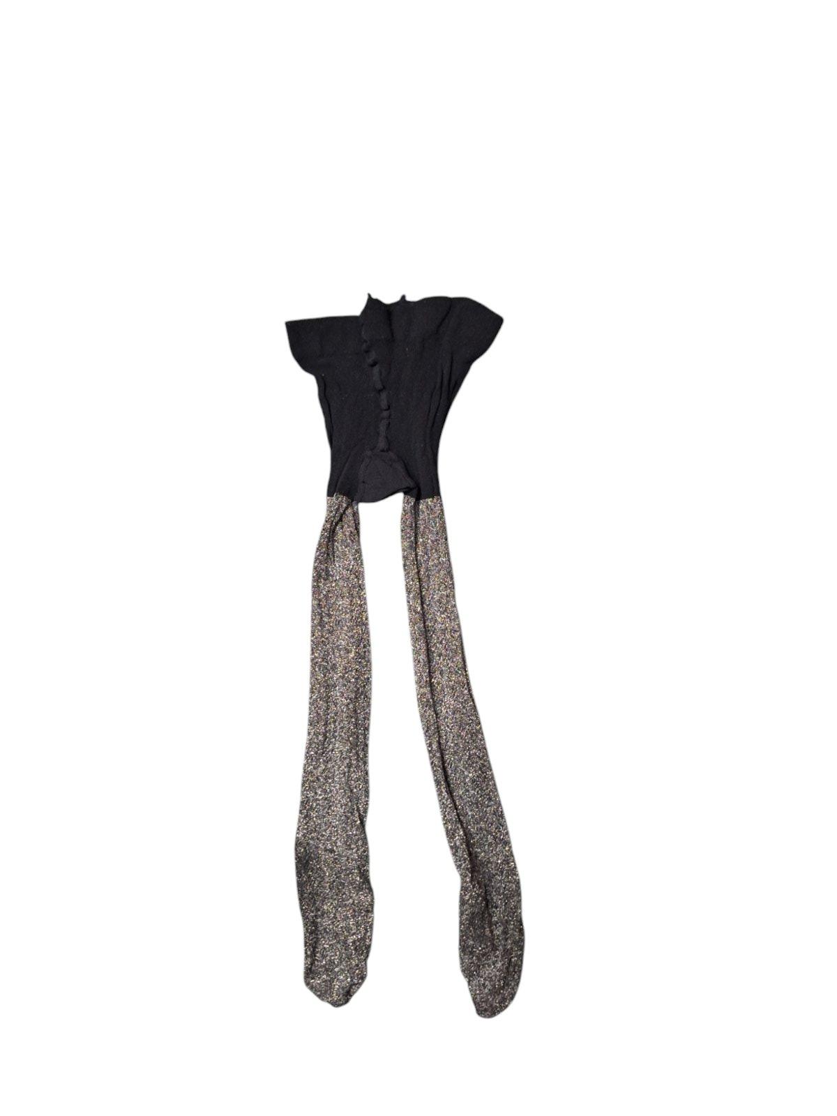Čierne pančušky, spodok pretkavany striebornou niťou, nove ,nenosené Velkoari pisana 140/146 Sedia podla mna skor 128/134
