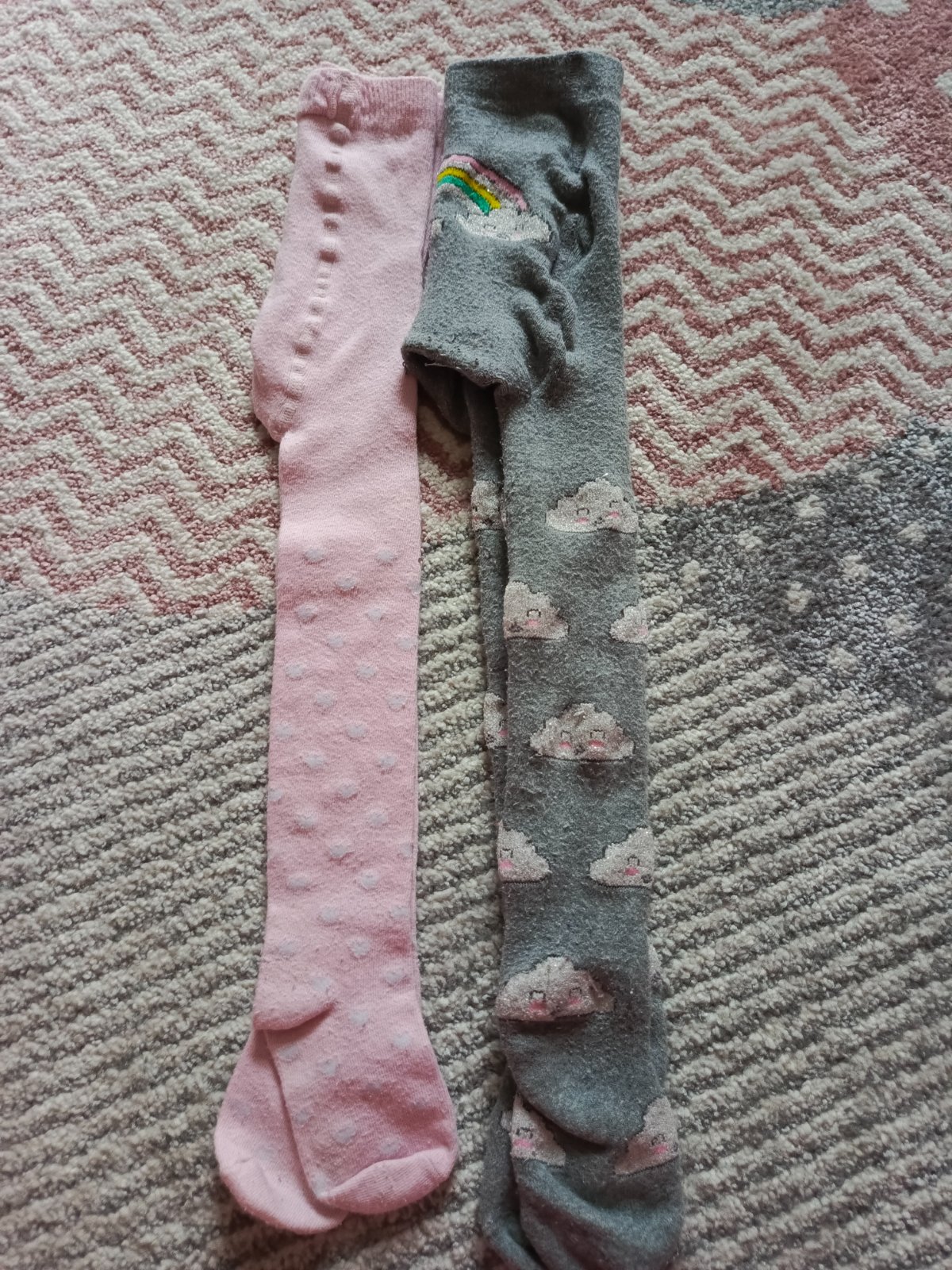 Predám pančušky 2x H&M vel.92 a 98/104, 1x teplejšie vel.86/92. a pásikavé vel.92. Cena 6 eur plus posta. Ruzove prikladam zadarmo