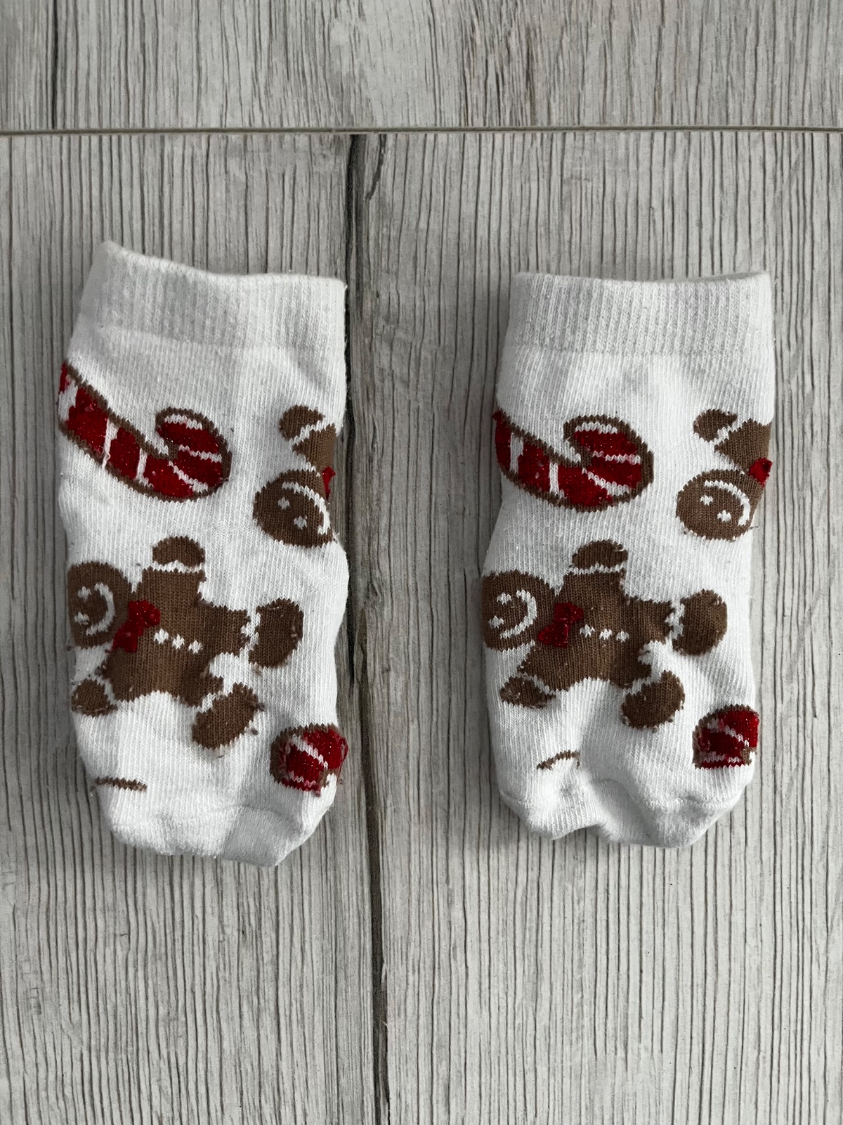 Predám biele vianočné ponožky s obrázkami perníčkov, veľkosť: 19-21