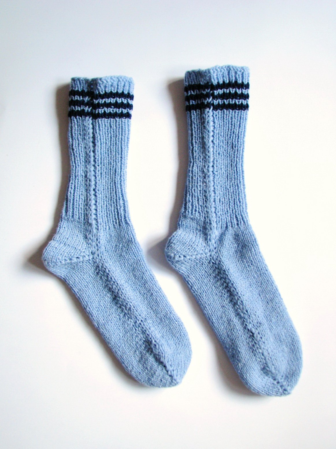 Nové hrubé zimné handmade ponožky modrej farby s bielymi prúžkami, ručne pletené mojou mamou zo zvyškov vlny; 1 pár. Dĺžka chodila je cca 26 - 29 cm, čo by malo zodpovedať veľkosti asi 40 - 43 (formulár Modrého koníka z neznámeho dôvodu neponúka na výber veľkosť 41 ani 43. Riaďte sa tým, čo tu píšem v inzeráte).
