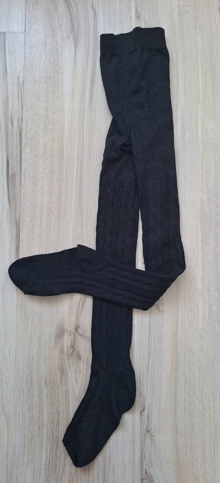 Dvoje pančušky čiernej farby so srdiečkami, značky wolf. Veľkosť písaná 98/104, celková dĺžka 55 cm (merané od pása po pätičku), pás 18 cm. Pančuchy sú dosť nosené, ale nemajú žiadne diery ani nie ...