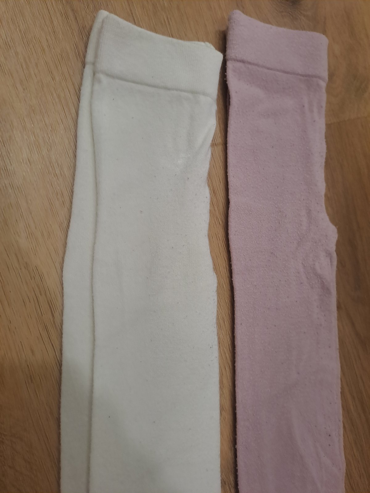 Bezove 3x oblecene, ruzove maju znamky nosenia , avsak stale pre dieta prijemny material na oblecenie. Moje diwta znieslo od 4r len tieto pancusky, tejto znacke a matwriaku sme boli verne 5r a teraz uz pancusky ani pocut :)