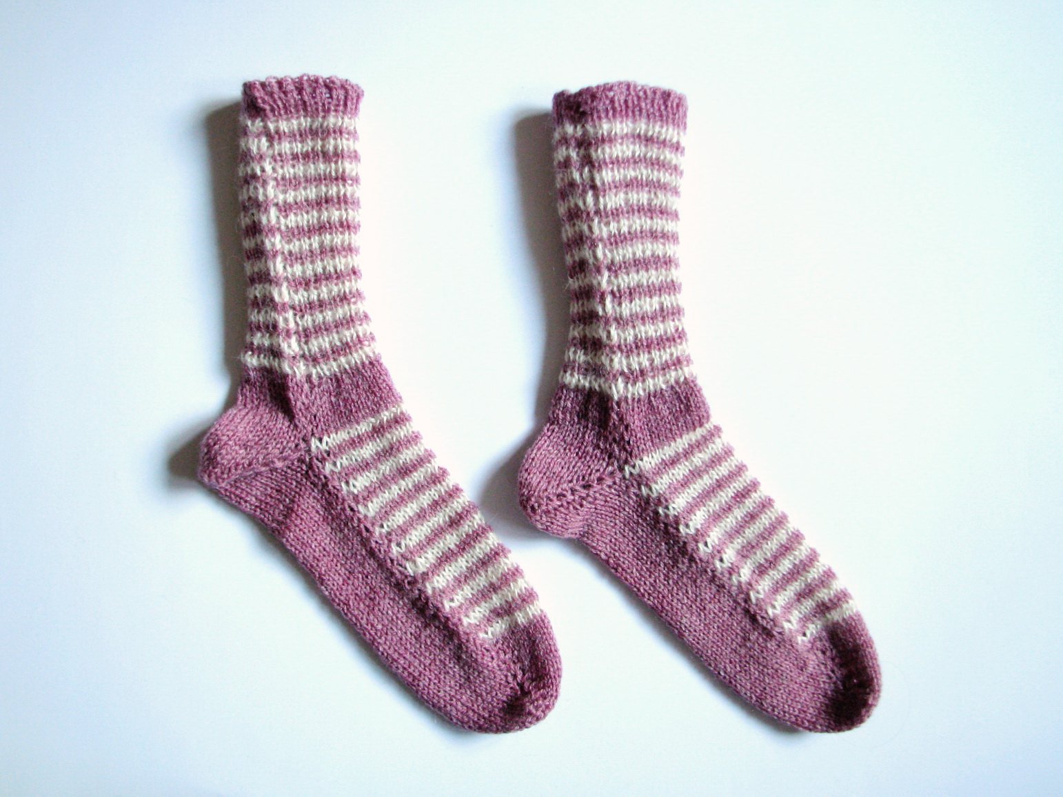 SkladomNové hrubé zimné handmade ponožky staroružovej farby s krémovo-bielymi prúžkami, ručne pletené mojou mamou zo zvyškov vlny. Dĺžka chodila je cca 23 - 26 cm, čo by malo zodpovedať veľkosti asi 36 - 40.
