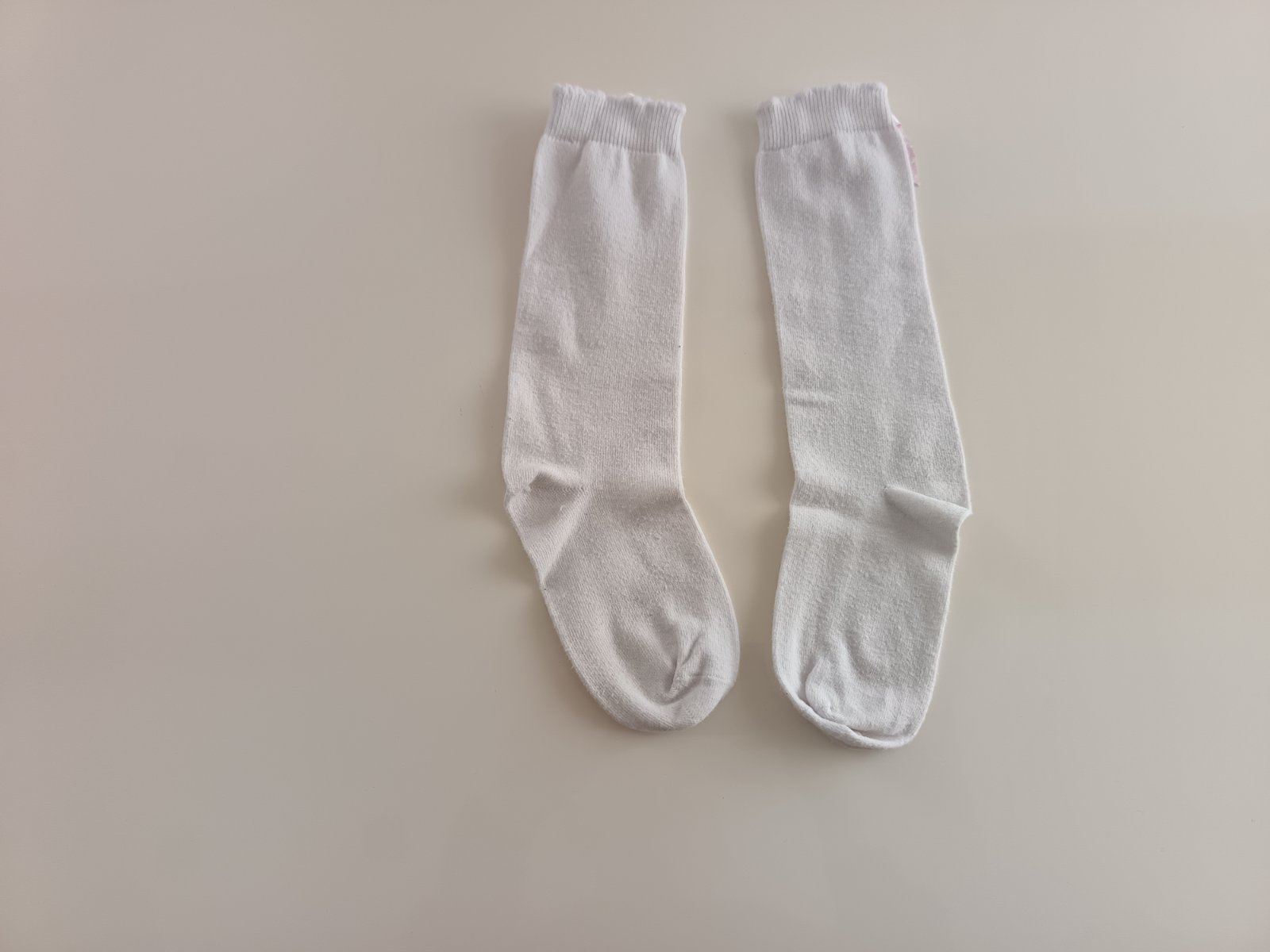 Biele podkolienky s ružovou mašličku, bez poškodenie, veľkosť zadaná orientačné, riaďte sa rozmerom(viď foto)