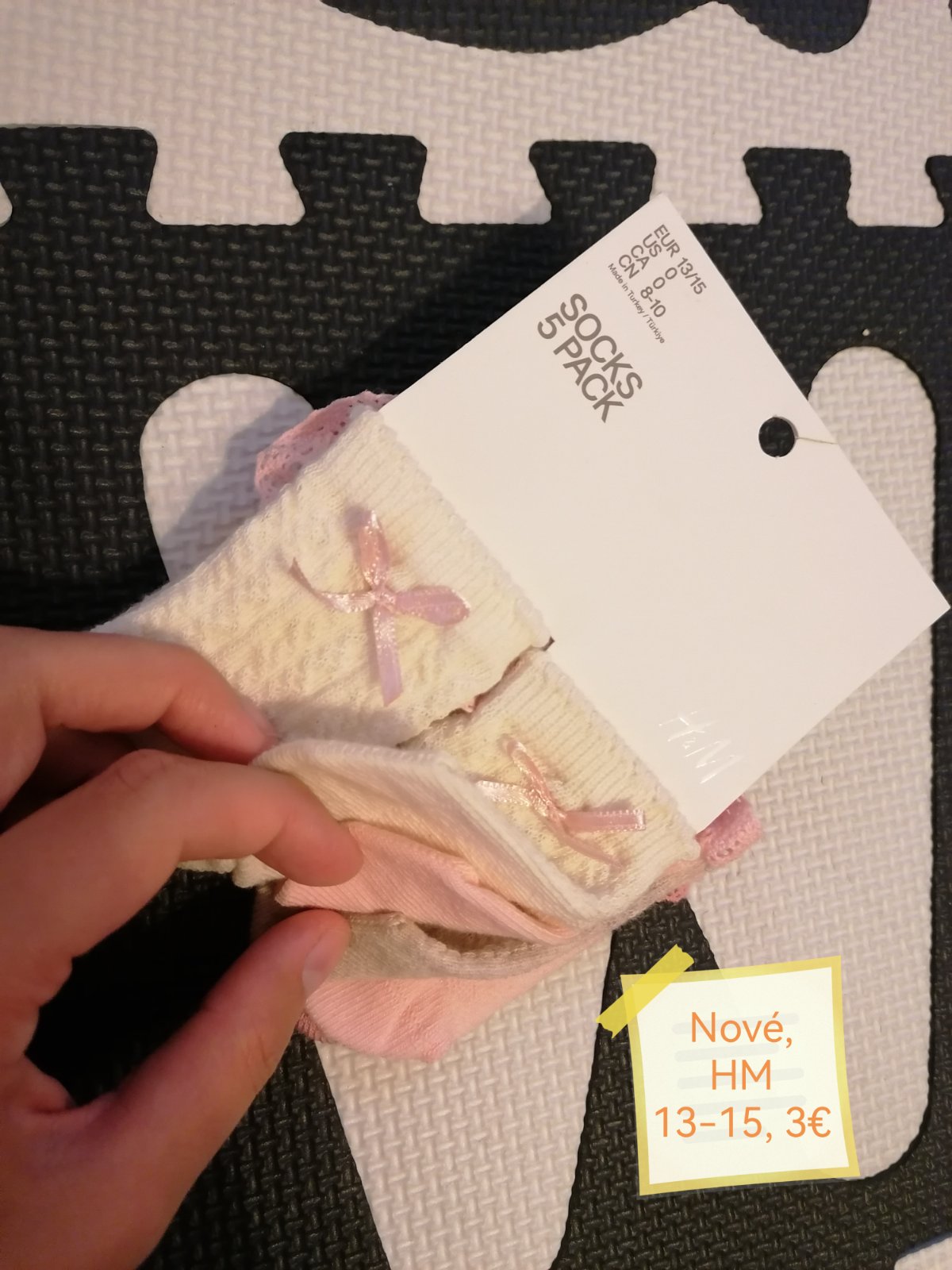Nové novorodenecké čipkované ponožtičky H&M, veľkosť písaná 13-15. Bohužiaľ sme kúpili skôr a zabudlo sa na ne. Vzadu aj cenovka - PC 5,99, predám za 3 €.