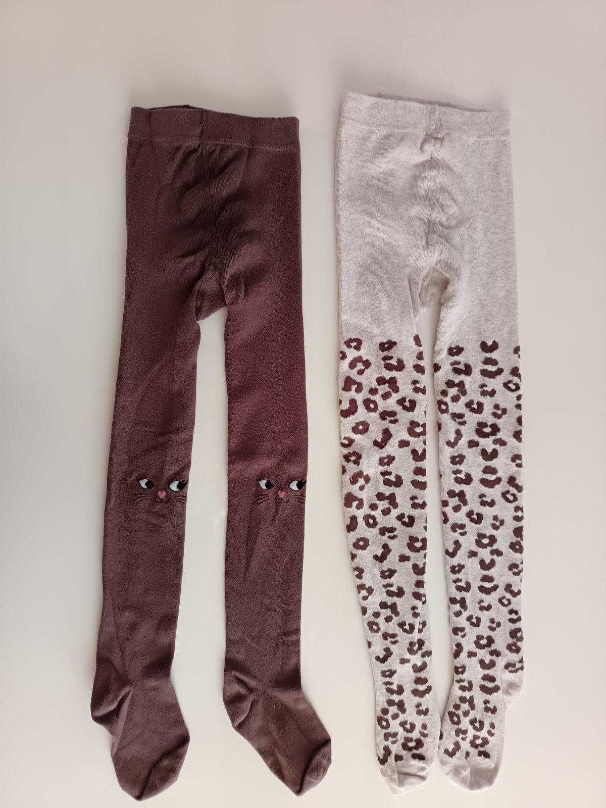 Dva páry pančuch, jedny hnedé, druhé krémové s hnedou potlačou, bez poškodenia. Cena za obidva kusy