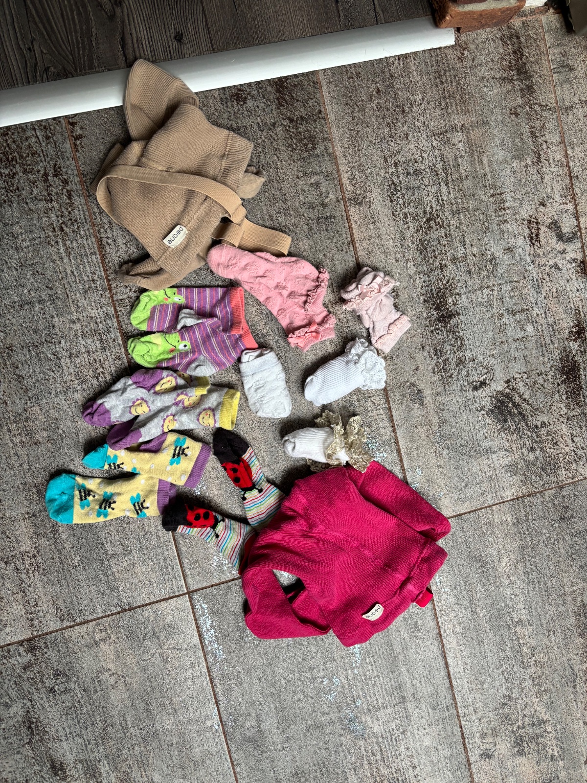 1x hrube pancuchy s protišmykovym spodkom v.cca 98 2x teplé jemné ponožky 23-26 2x pančuchy gratis na doma (s dierkou)