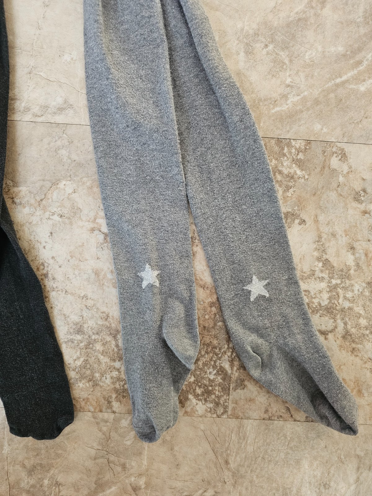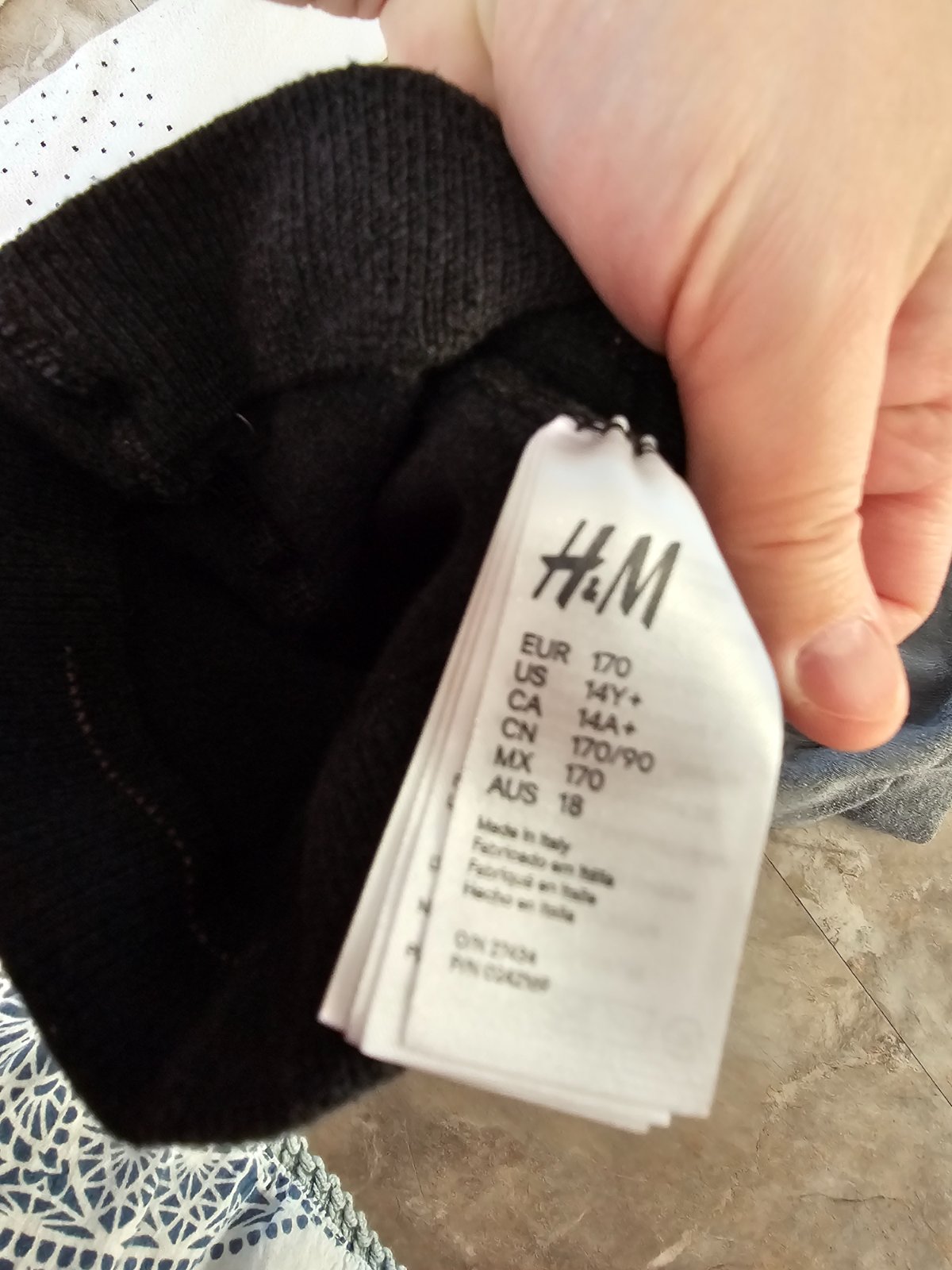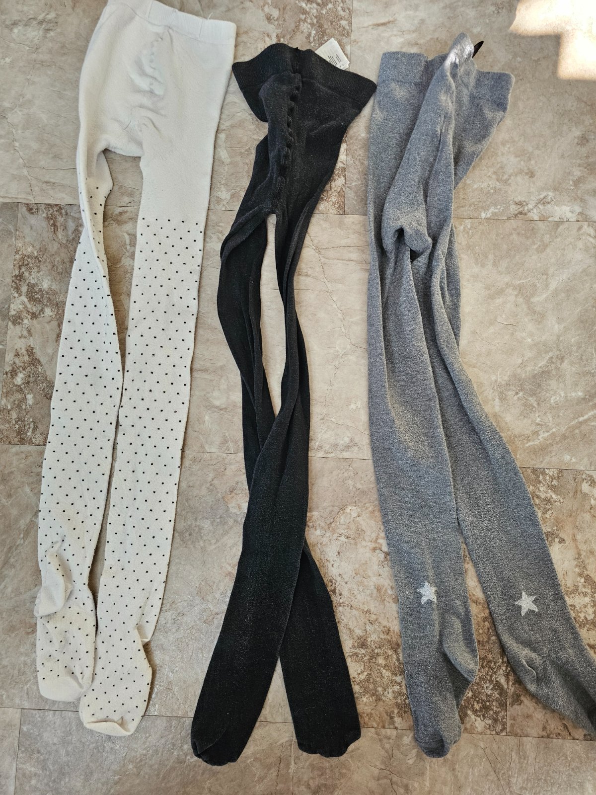 3x pancusky, biele bez su bez velkosti, tmave HM maju uvedene 170+, sive s hviezdickou Tchibo zase 134/140. My sme nosili ako 152. Dlzka biele 84cm, tmave 86cm, sive 83 cm.