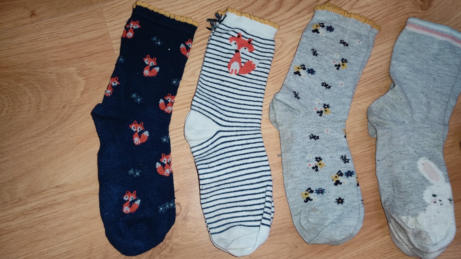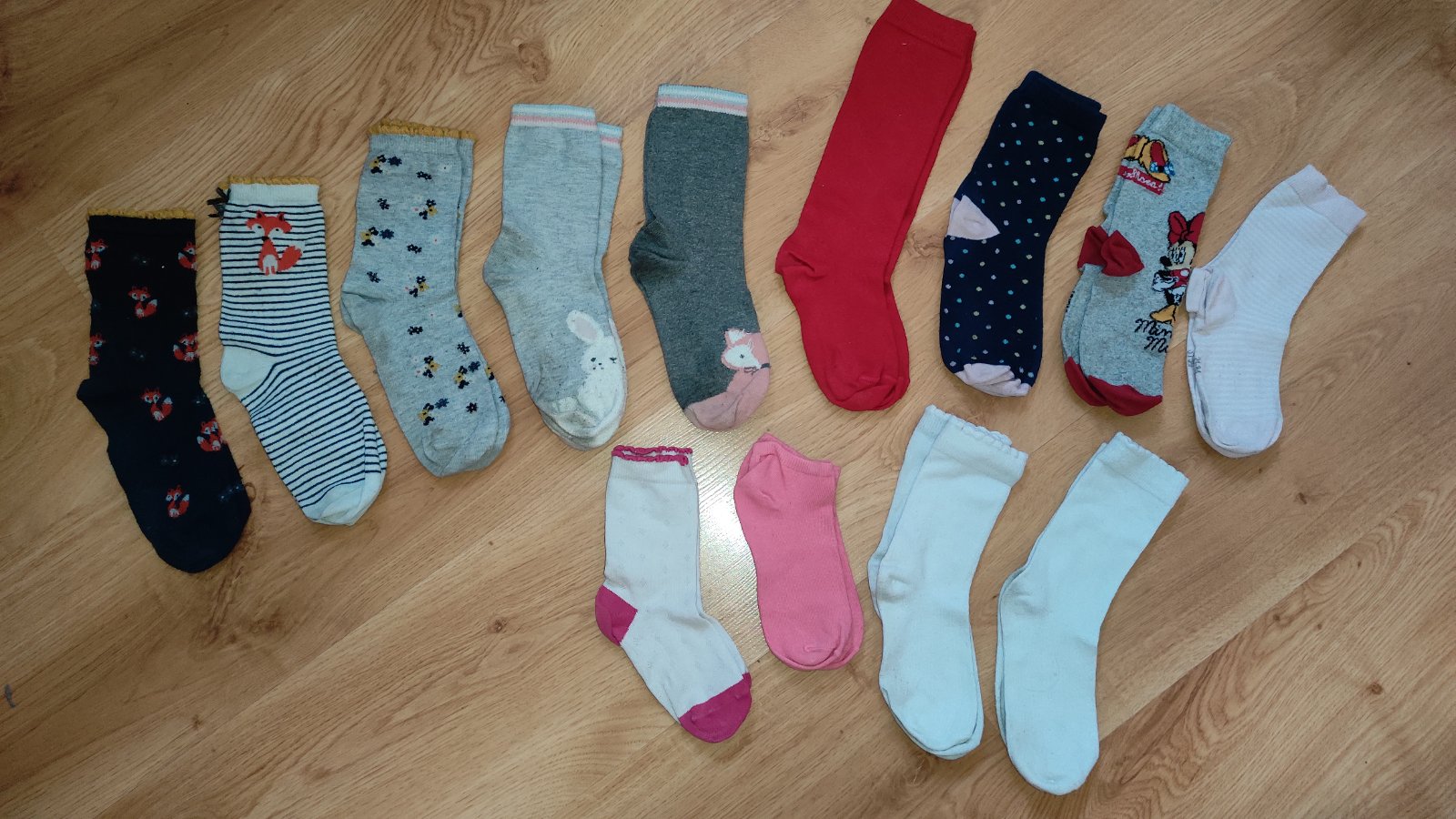 Ponúkam na predaj pekne ponožky pre dievčatko. Nosené, ale neznicene, nevysuchane, bez zmolkov, malý chlpík z prania na niektorých. Cena 3 eura.