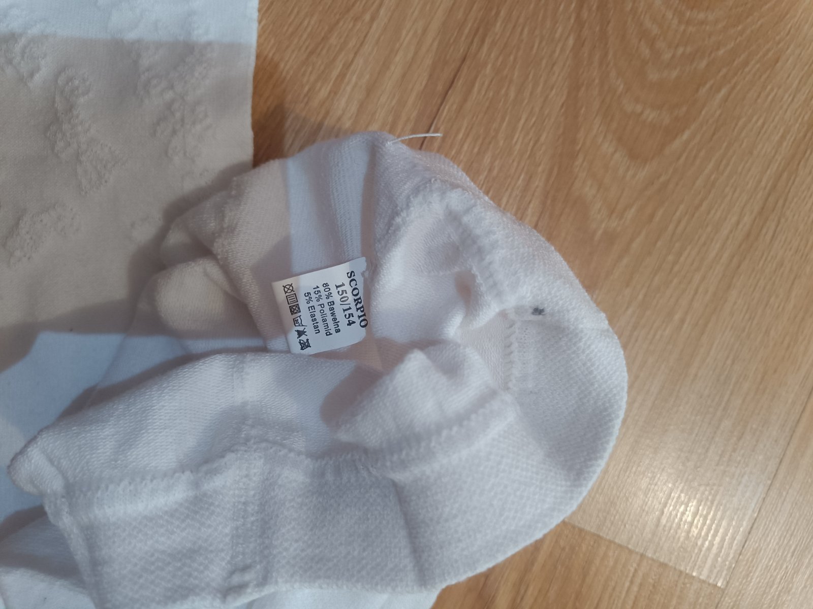 Predám nenosené biele pančuchy značky Scorpio, jemný vzor, veľkosť 150/154