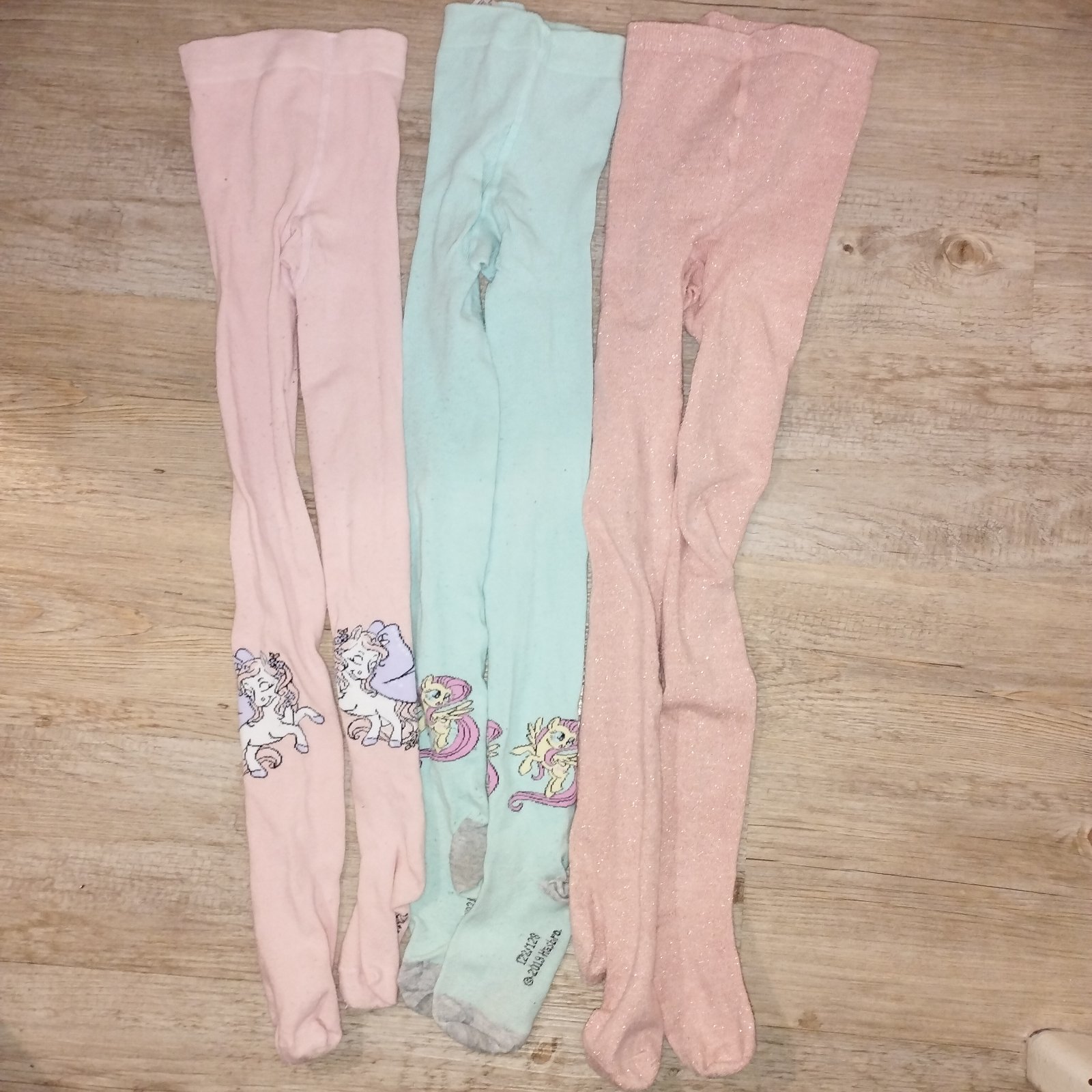 Krásne pančušky s motívom My Little Pony, Jednorožec a jedny lesklé prešívané zlatou niťou v peknom používanom stave
