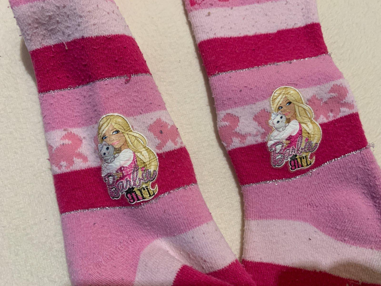 Teplé Barbie pančušky 2ks, majú žmolky ale inak ok. Veľkosť 110/116.