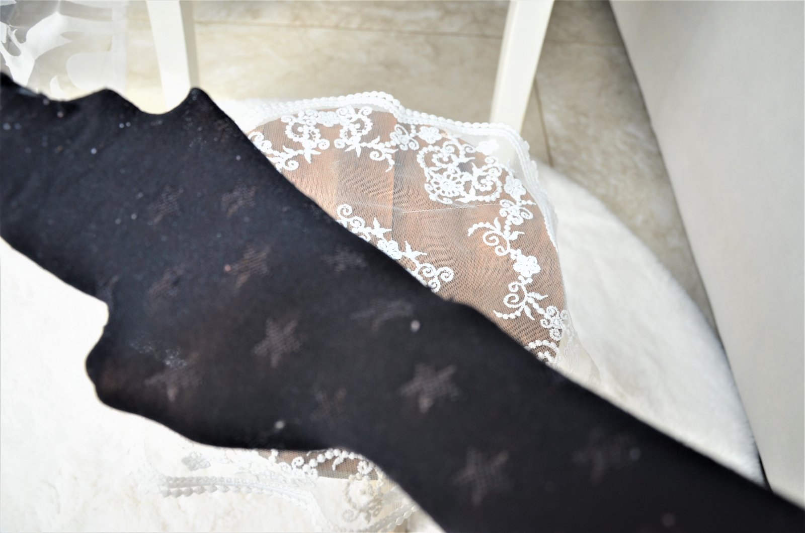 pančušky pár x oblečené,majú žmolky-dĺžka 68cm,pás 2x 16cm,diery žiadne..kuk aj na iné moje inzeráty