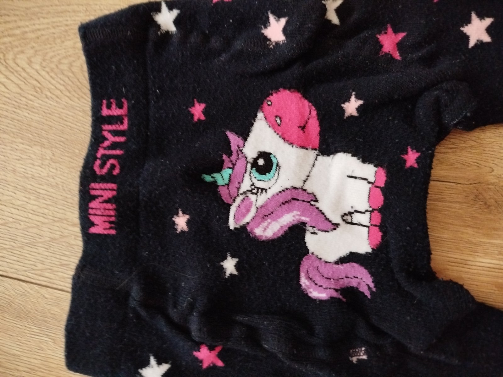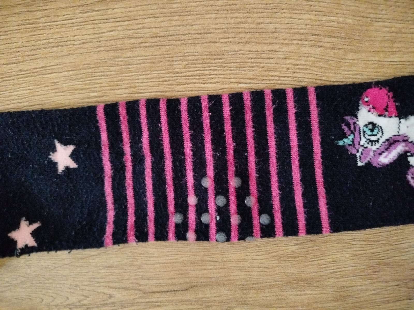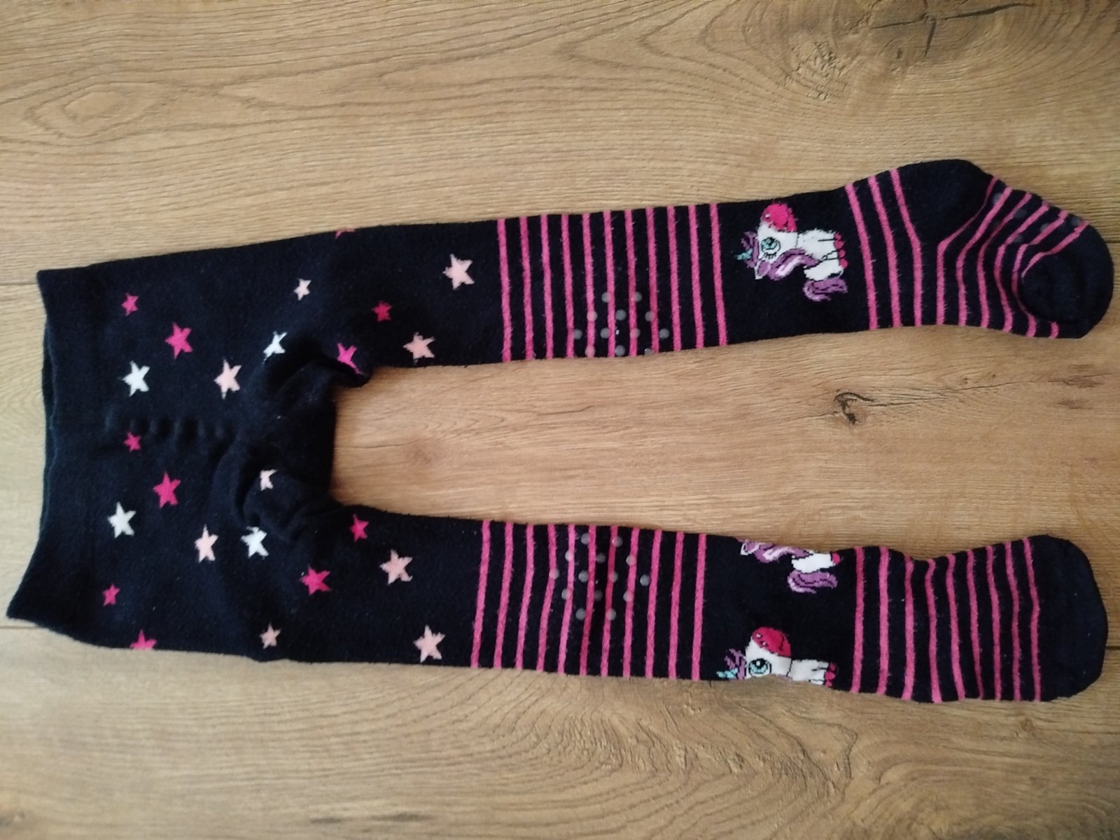 Nosené hrubšie na kolenách protišmykové guľky veľkosť 2-3 roky značky neviem ale sú kvalitnejšie majú zmolky z prania
