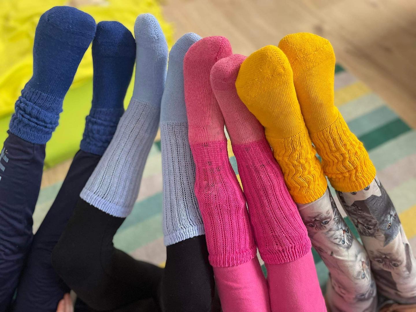Pre deti k dispozícii 4 farby (žltá, fuchsia, svetlomodrá, tmavomodrá) a pre dospelých 22 farieb (rôzne farby od bielej až po čiernu) - celé farebné spektrum nájdete vo fotogalérii na Facebook profile "Nožičky ako v bavlnke".
