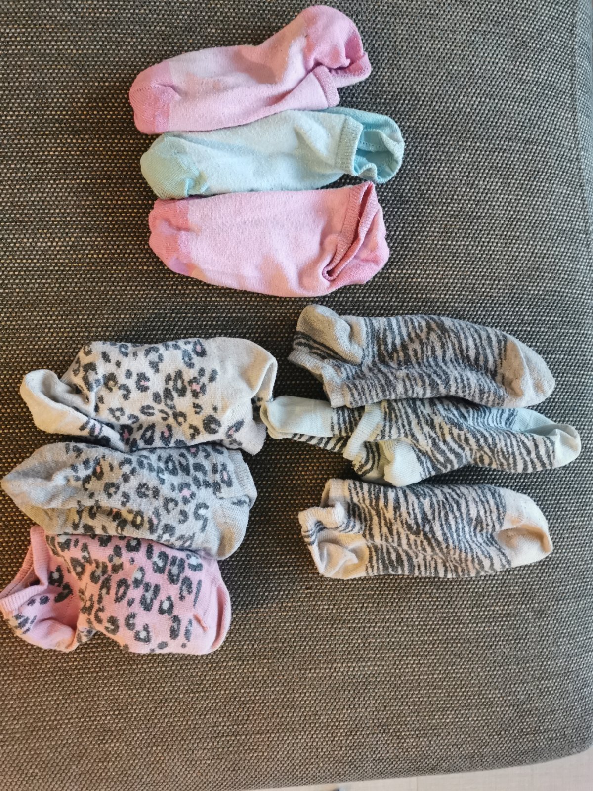 Nosené, možno niektoré trochu prešuchane, možno niekde nejaká minidierka a možno ani nie. Nechce sa mi ich všetky kontrolovať. Cena spolu za 9kusov.