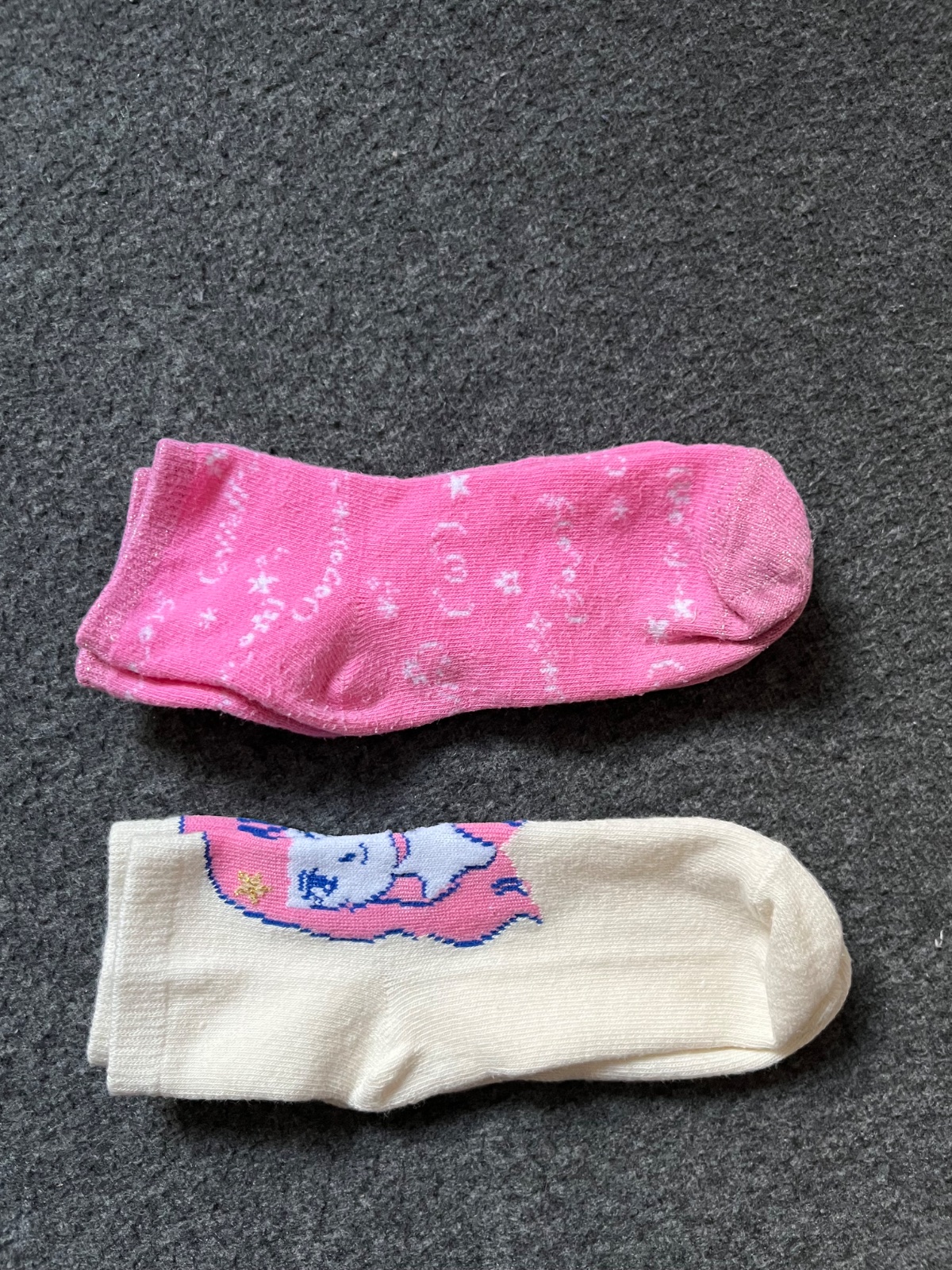 Ponožky - ružové párkrát oblečené, tie druhé len oprane. Veľkosť 23/26