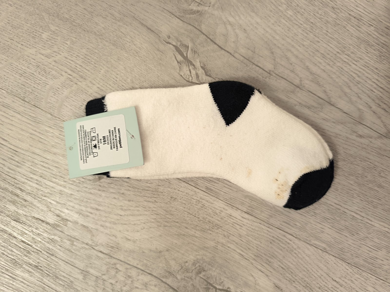 Ponožky sú nové, ale stali v šuplíku, neviem akou náhodou na jednej z boku sú 2 malé žlté fľaky, možno to pôjde vyprať. Vyzerajú byť v pohode, teplé.