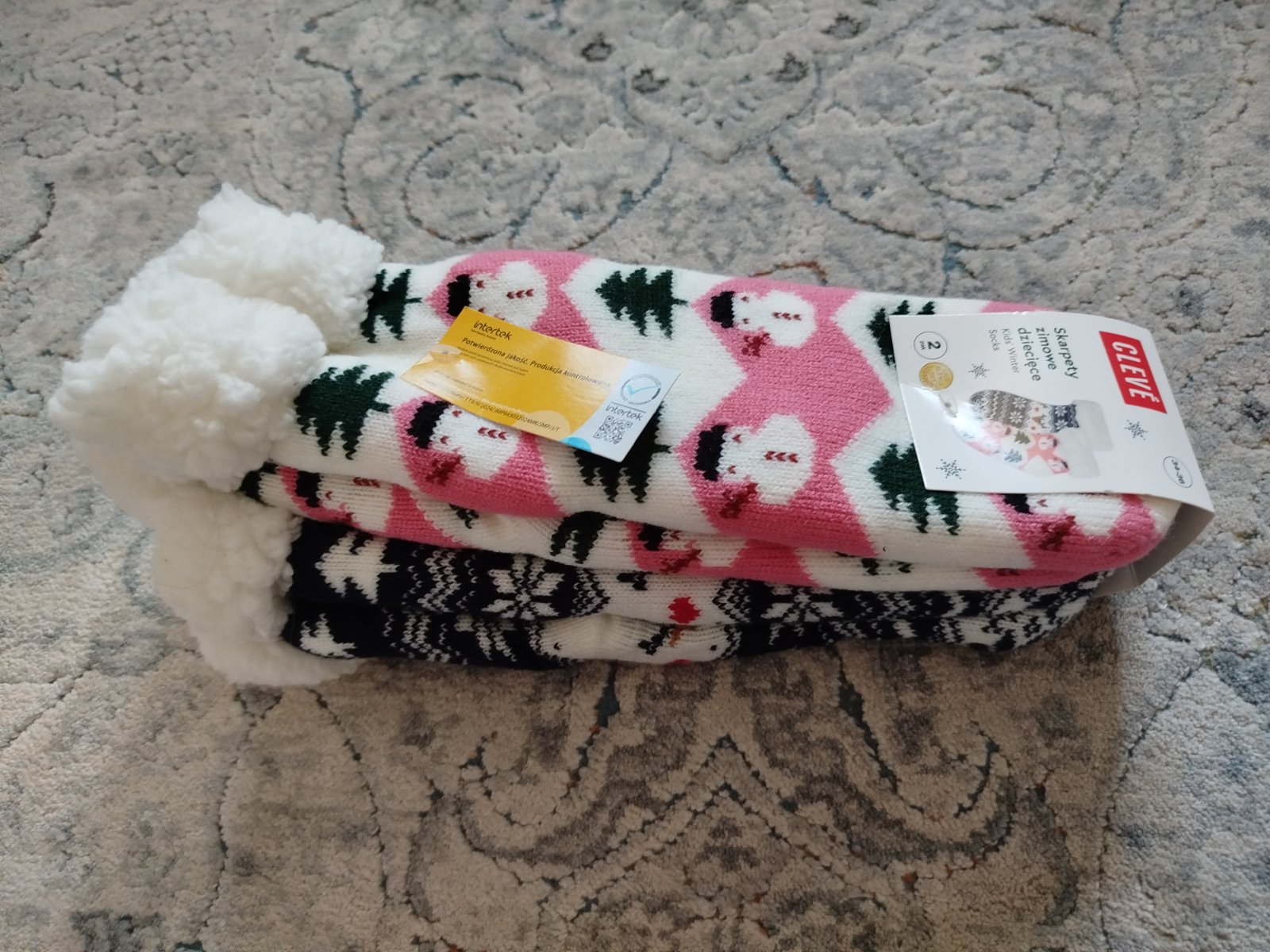 Extra hrubé zimné protišmykové ponožky, veľkosť 34-36. Sú mäkučké, s teplou kožušinkou vnútri. Od spodku sú protišmykové, majú pekný zimný / vianočný vzor. Cena + pošta.