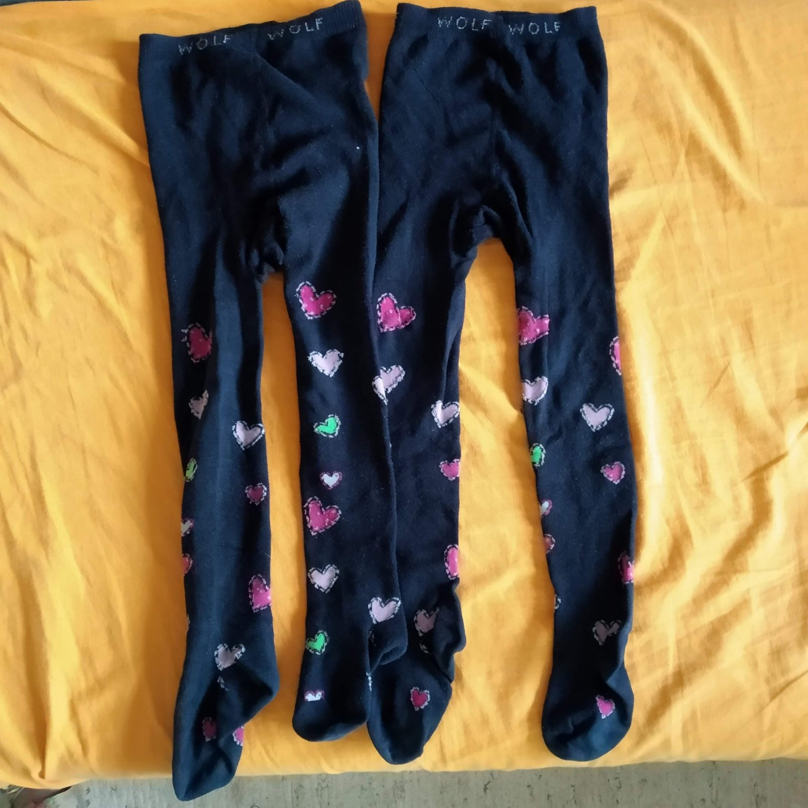 Dvoje pančušky čiernej farby so srdiečkami, značky wolf.