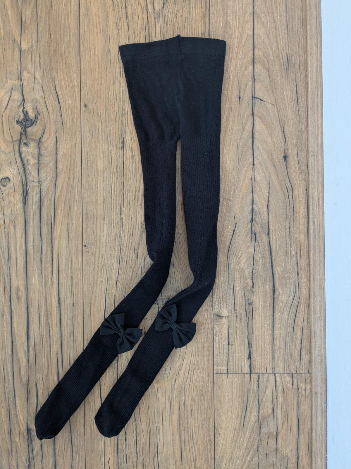 Vrúbkované, s mašličkami, štítok odstrihnutý, veľkosť plus mínus 134/140, sú pružné, prispôsobia sa. Super stav bez poškodení.
