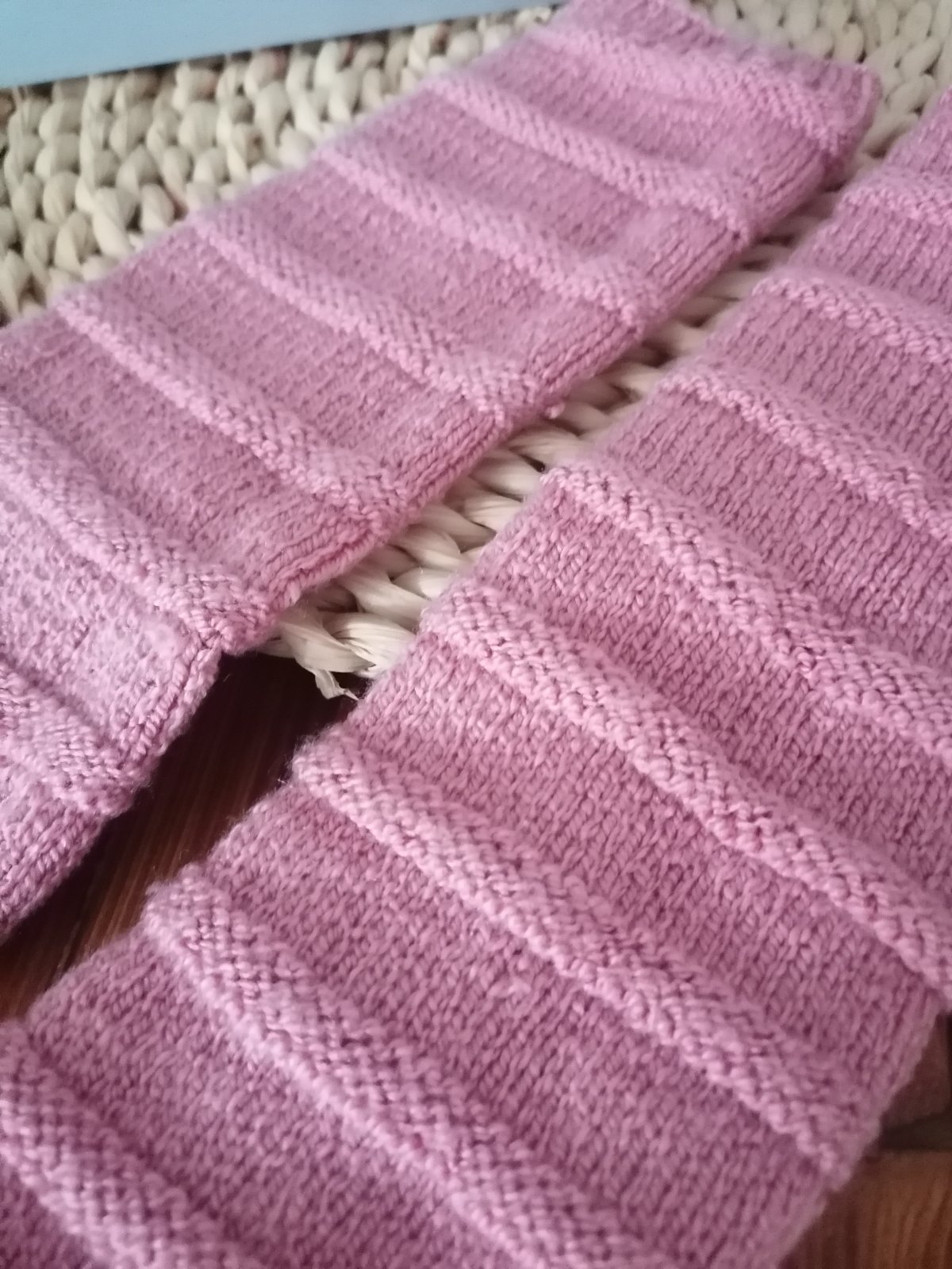 Ručne pletené štucničky svetlo fialovo-biela kombinácia pre malé nožičky + nákrčník. Rebrový vzor, aplikácia biely kvietok na každom kúsku. Vhodné pre dievčatko 3-6 mesiacov. Takmer nevyhnutnosť...