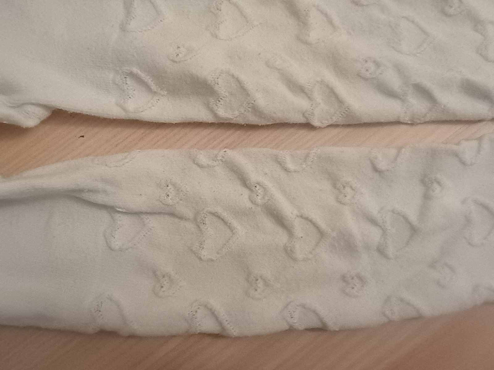 4 ks pančušky v nosenom stave. Minižmolky a nie sú už snehobiele.
