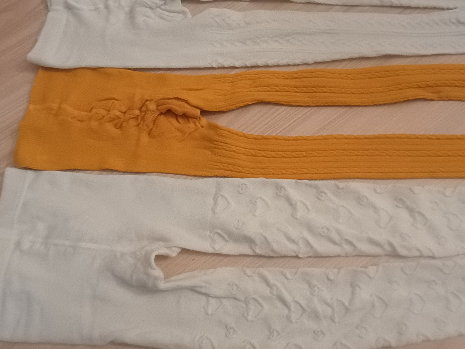 4 ks pančušky v nosenom stave. Minižmolky a nie sú už snehobiele.