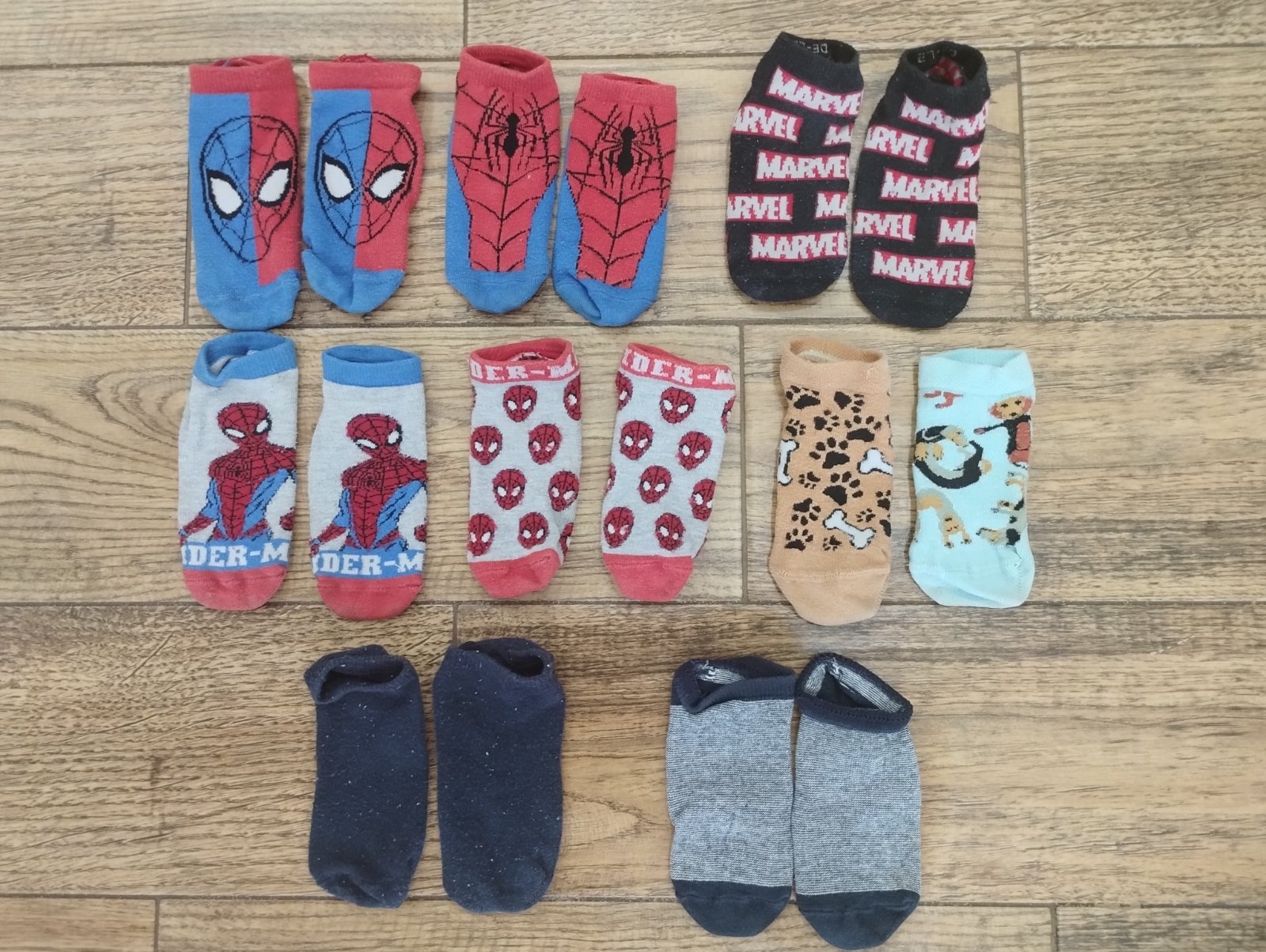 7x členkové ponožky H&M veľkosť 27/30, 1x ponožky Desoles. Nosené. Edícia Marvel.
