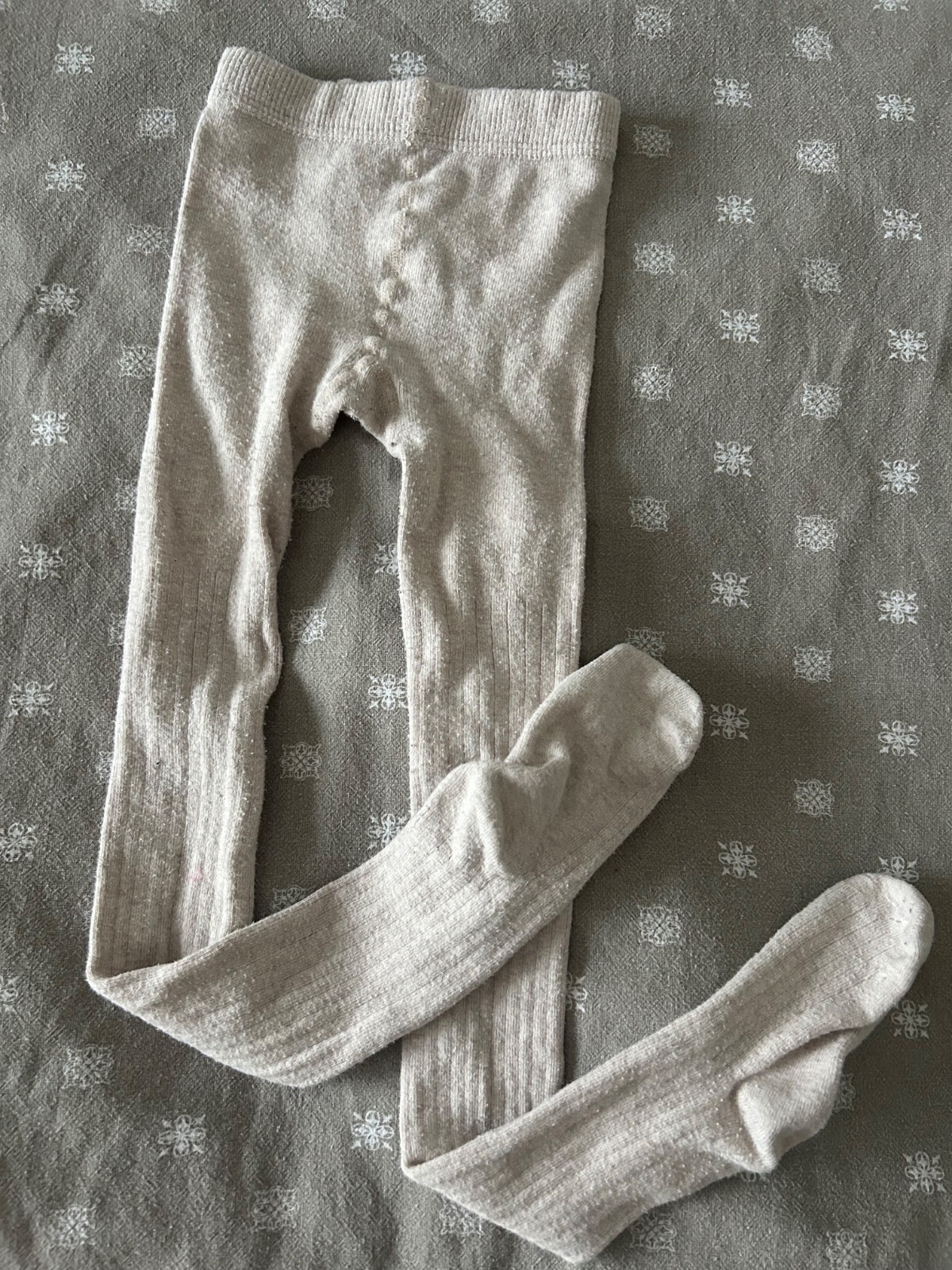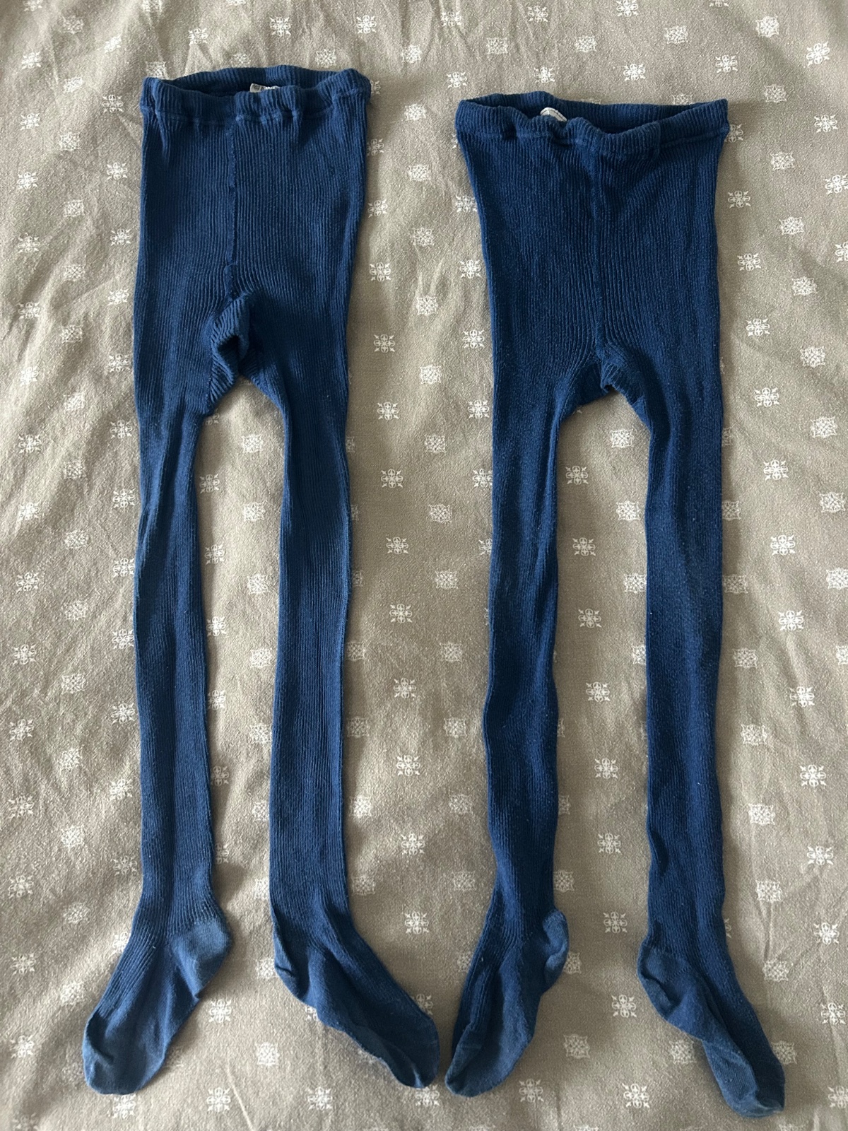 2 kusy rebrované bavlnené pančuchy - 100% bavlna. Top pohodlné a ľahko sa dieťa samo oblieka 👌 sedí na 3-4 roky - nosené, viď foto, ale bez dier na prstoch - symbolicky - príp. darujem samostatne zadarmo k nákupu 🤗